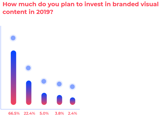 66%的营销决策者将比2018年投入更多的资金创建品牌视觉内容。提高其目标受众的参与度(42%),并在竞争中脱颖而出(22%)。