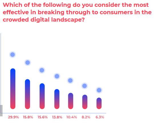 30%的受访营销人员认为,“优秀的客户服务”是最有效的方式,可以在企业中脱颖而出。在与消费者打交道时,它甚至比产品本身或品牌宣传活动的质量还重要。营销人员认为,寻找最佳的在线渠道接触受众是一项重大挑战。