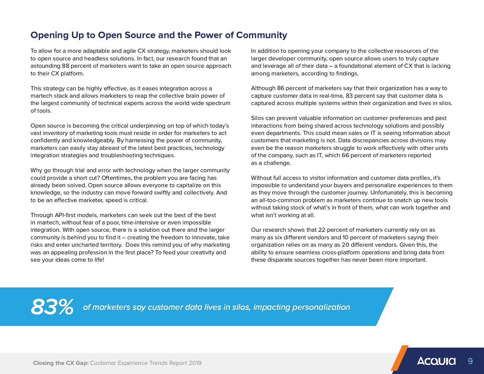 现在是时候消除将我们的平台和数据分开的障碍了,同时也需要将我们的社区联合起来,相互依靠和学习。这种在很大程度上得益于开源技术的巨大进步,它允许真正的客户体验创新。