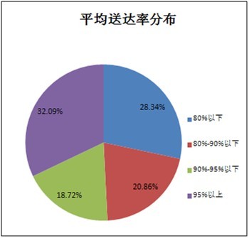 数据显示,企业发送的邮件中,平均有86.78%邮件能够成功进入网易邮箱。有近一半(50.81%)企业送达率高于90%,32.09%企业送达率高于95%,11%送达率高于99%。说明有不少企业对邮件营销非常重视,用户地址列表较完善,营销邮件发送规范,因此成功送达到网易邮箱用户的比例非常高。