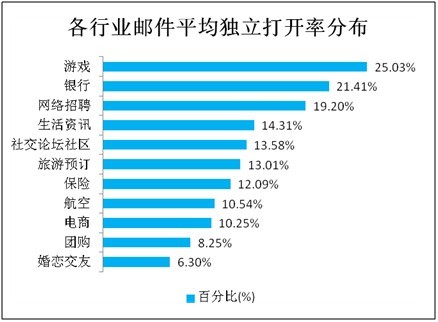 旅游预订行业邮件送达率最高 游戏行业打开率最高