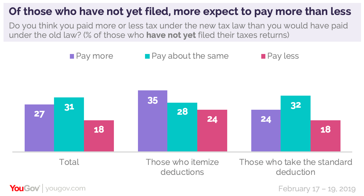 重要的是那些报税的人是否认为他们在省钱,不管因为一整年有大笔退款或是少部分预扣税款。早期申报者说他们付的钱更多,标准扣除的人更有可能说他们付的钱更少。