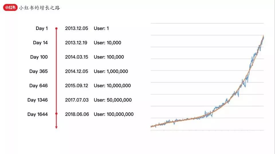 小红书是一个泛品类的生活方式分享平台。截止到2018年12月,用户数已经突破1亿8千万,这个增长相对而言还是比较快的了。回想2014年底、2015年初我刚加入小红书的时候,当时小红书只有20人左右的规模,而现在我们用1644天完成了用户数过亿。