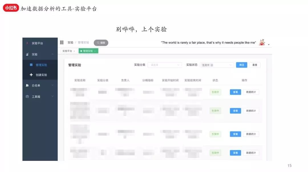 第二个是实验平台。这是小红书内部的实验平台。做实验是一种意识。