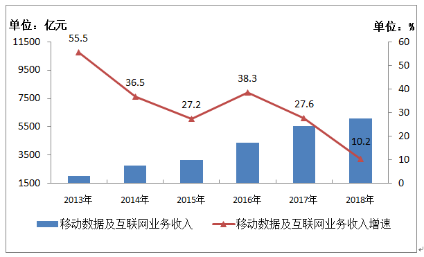 图1-5 2013-2018年移动数据及互联网业务收入发展情况