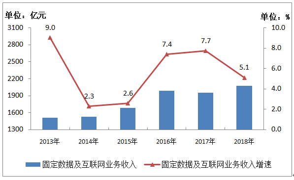 图1-4 2013-2018年固定数据及互联网业务收入发展情况