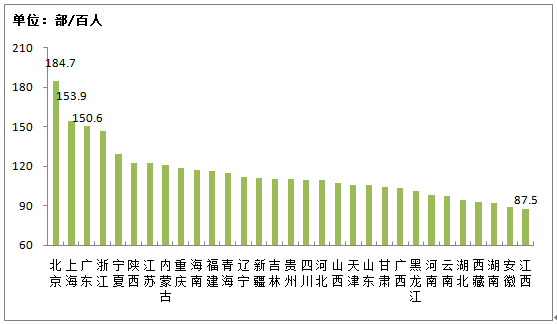 截至12月底,东、中、西部地区100Mbps及以上固定互联网宽带接入用户分别达到14003万户、7767万户和6871万户,比上年末分别增长89.9%、149.5%和124.7%,在本地区宽带接入用户中占比分别达到71.7%、70.6%和67.4%。中部地区增速明显加快,增速比东部和西部分别快59.6和24.8个百分点;东部地区100M及以上宽带接入用户占比较上年末大幅提高36.2个百分点。