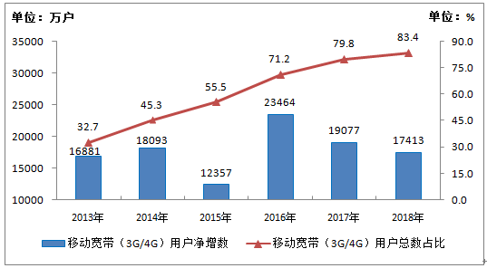 图2-3 2013-2018年移动宽带(3G/4G)用户发展情况