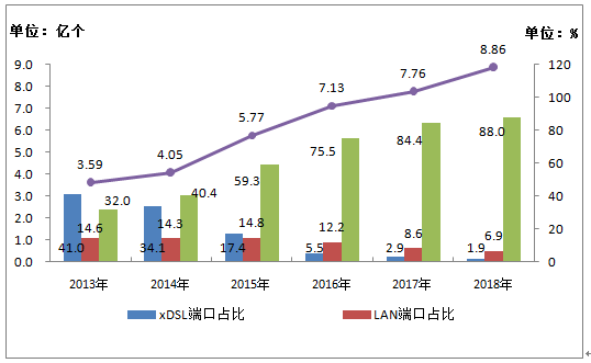 图4-1 2013-2018年互联网宽带接入端口发展情况