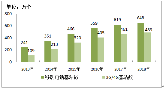 2018年,全国净增移动通信基站29万个,总数达648万个。其中4G基站净增43.9万个,总数达到372万个。