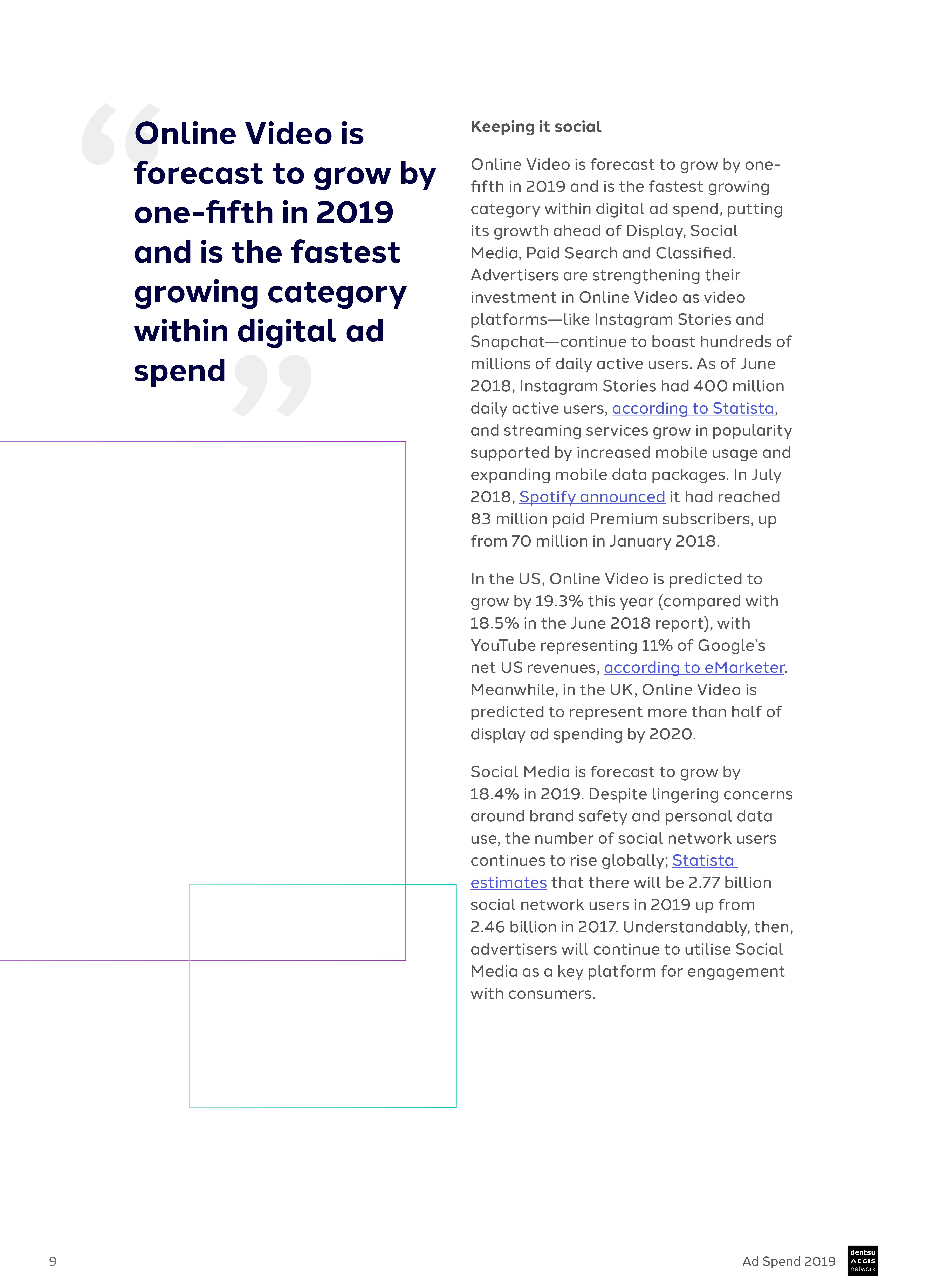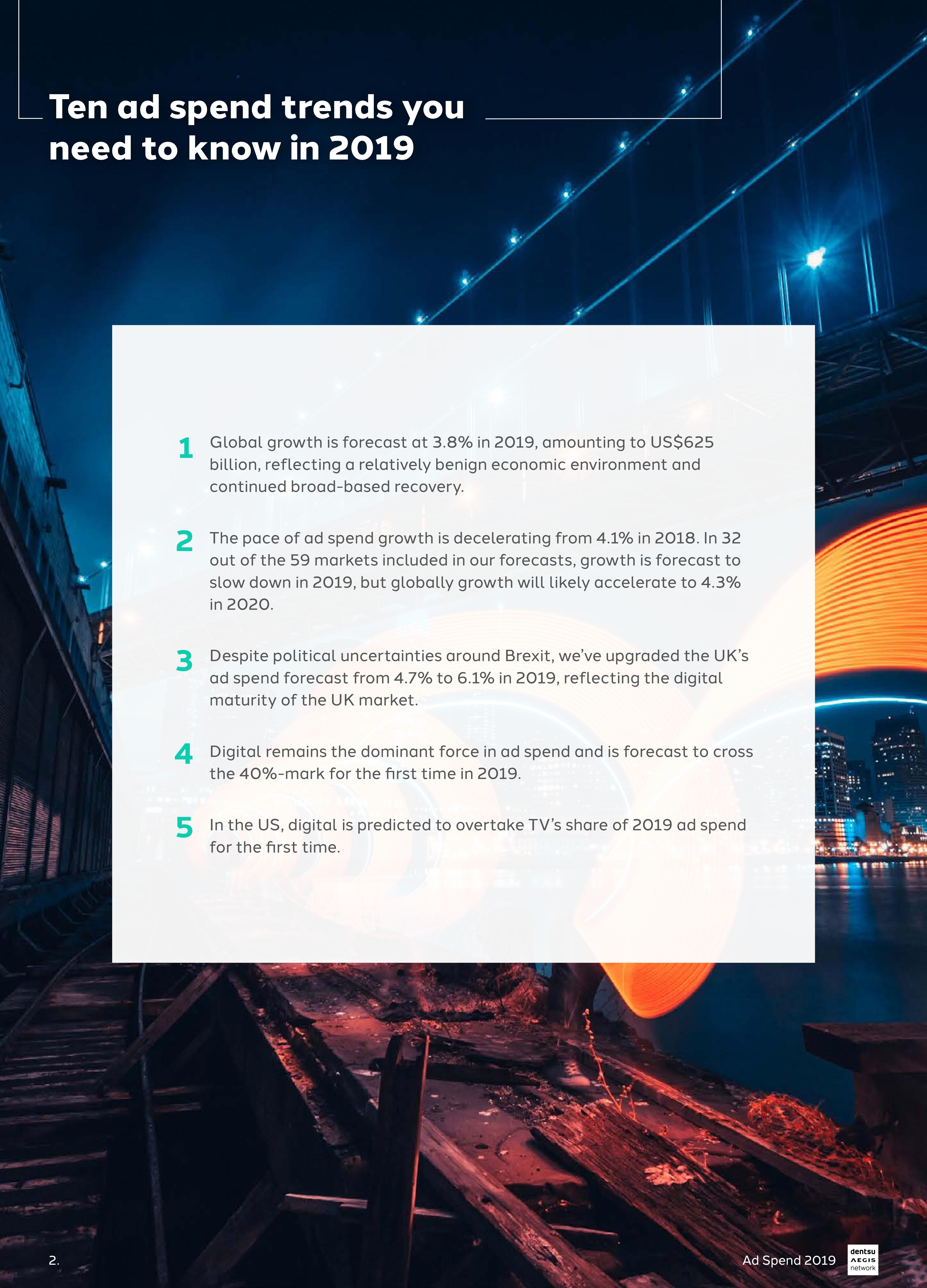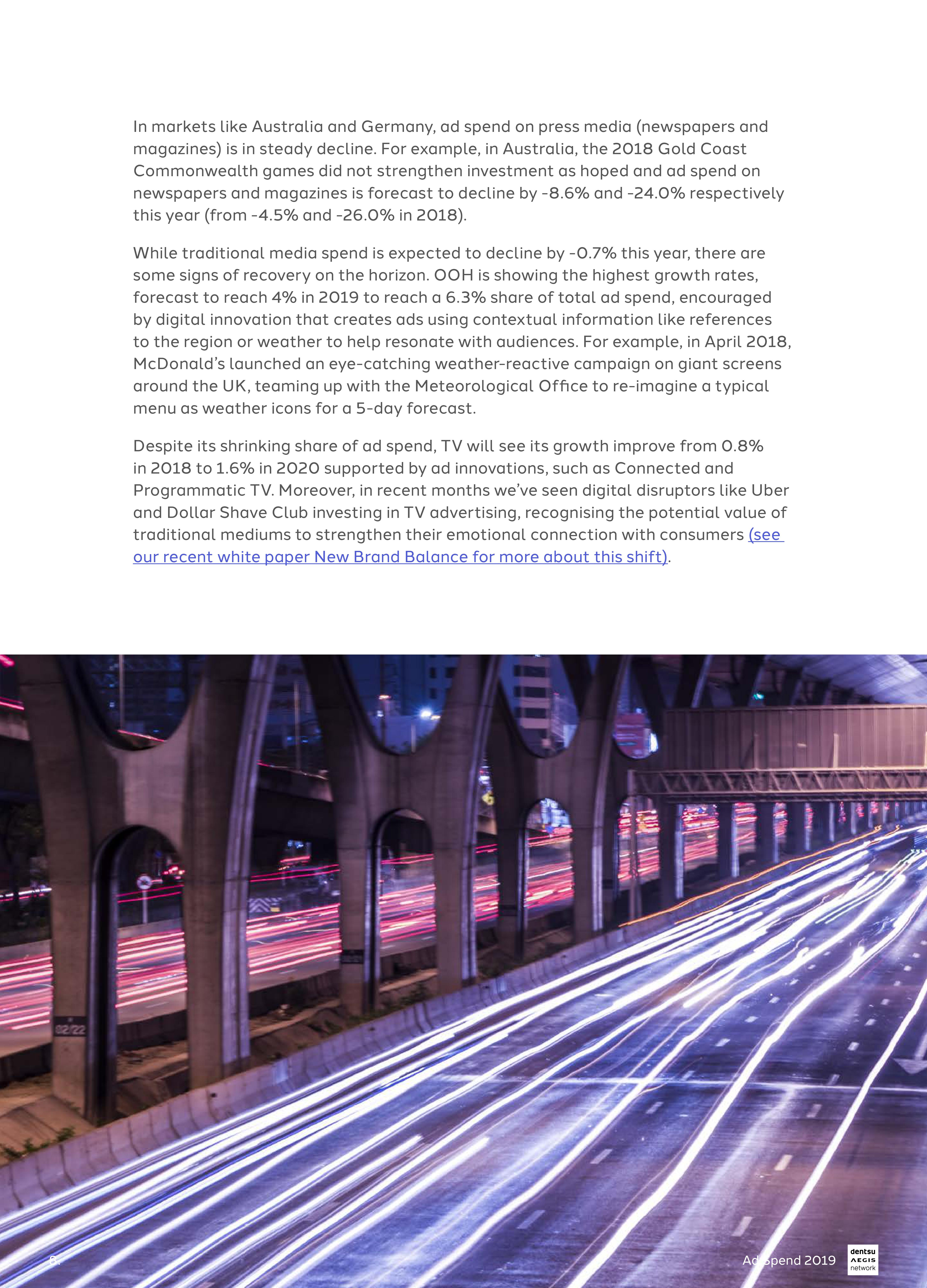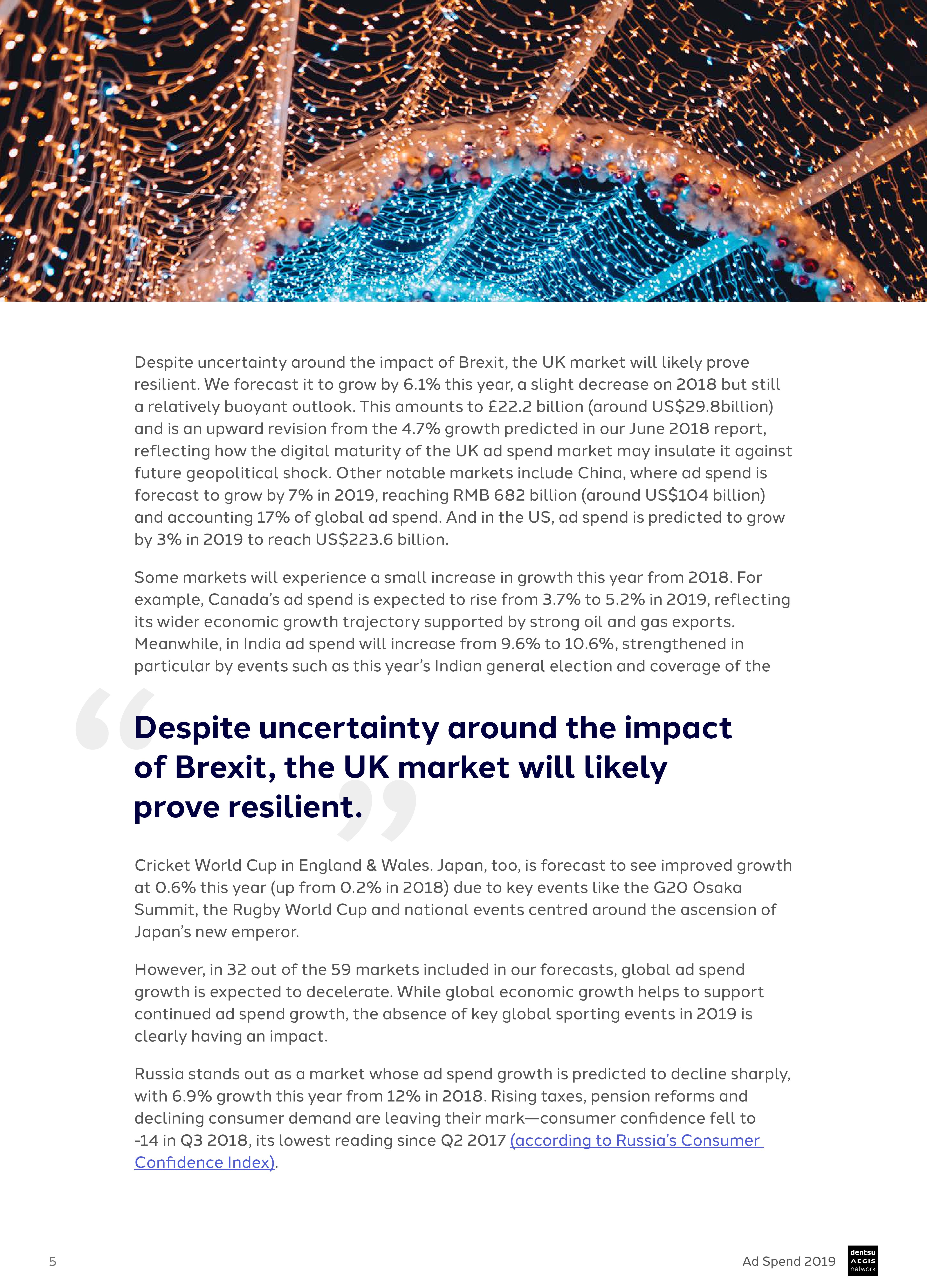 尽管英国脱欧存在政治不确定性,但Dentsu Aegis已将英国的2019年广告支出增长预测从4.7%上调至6.1%,反映了英国市场的成熟度。