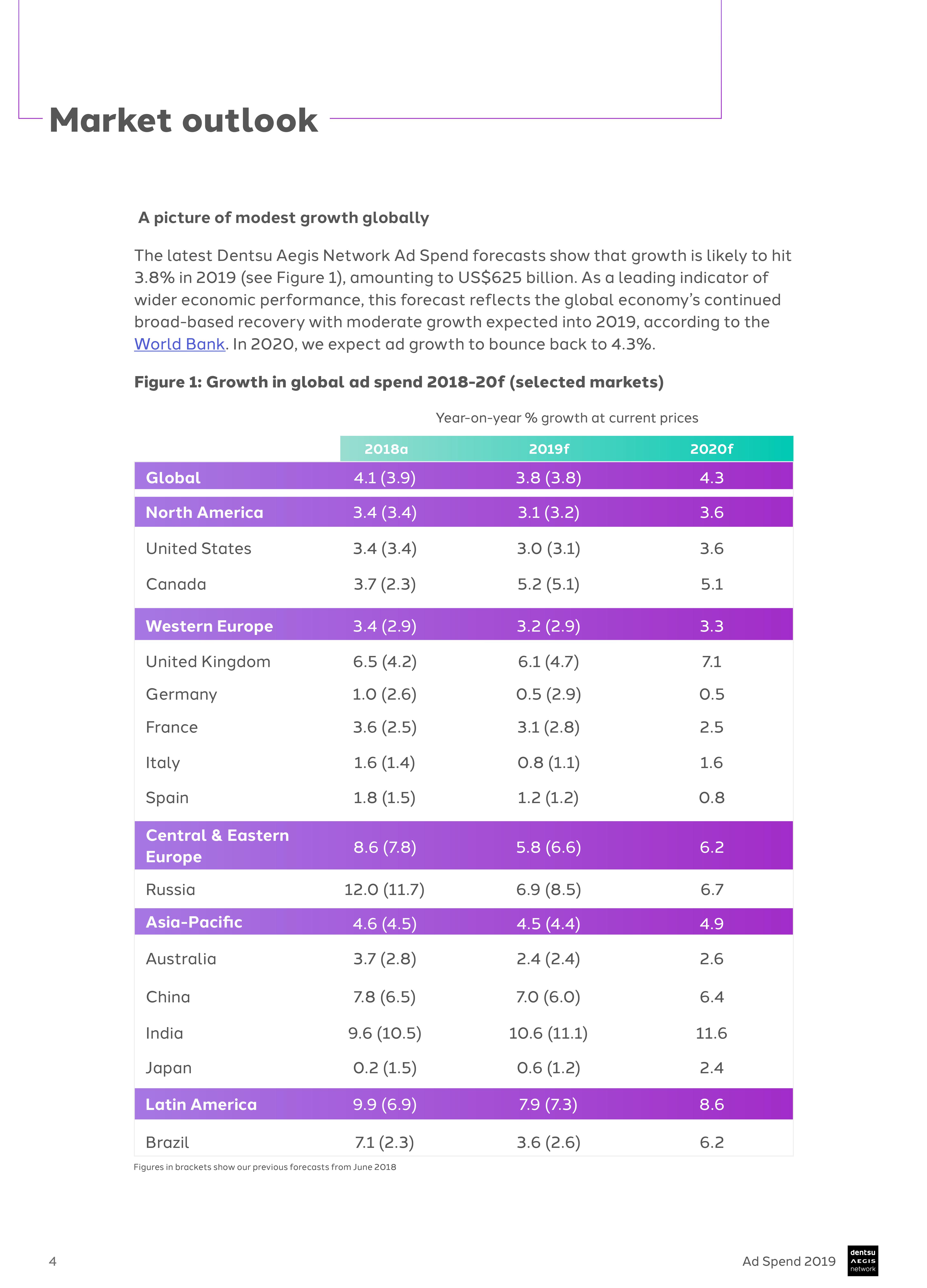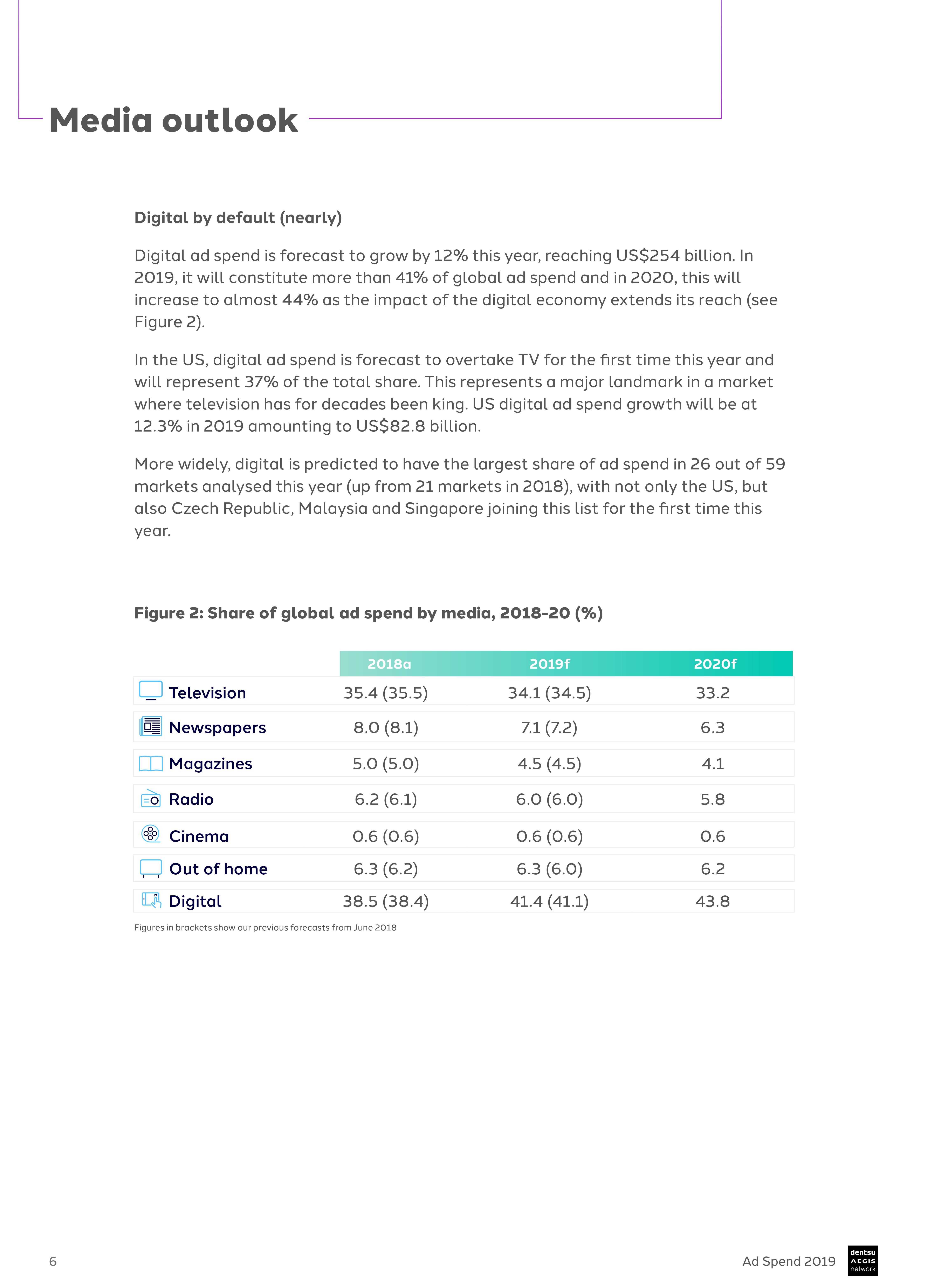 Dentsu Aegis发布了2019年全球广告支出的最新预测。