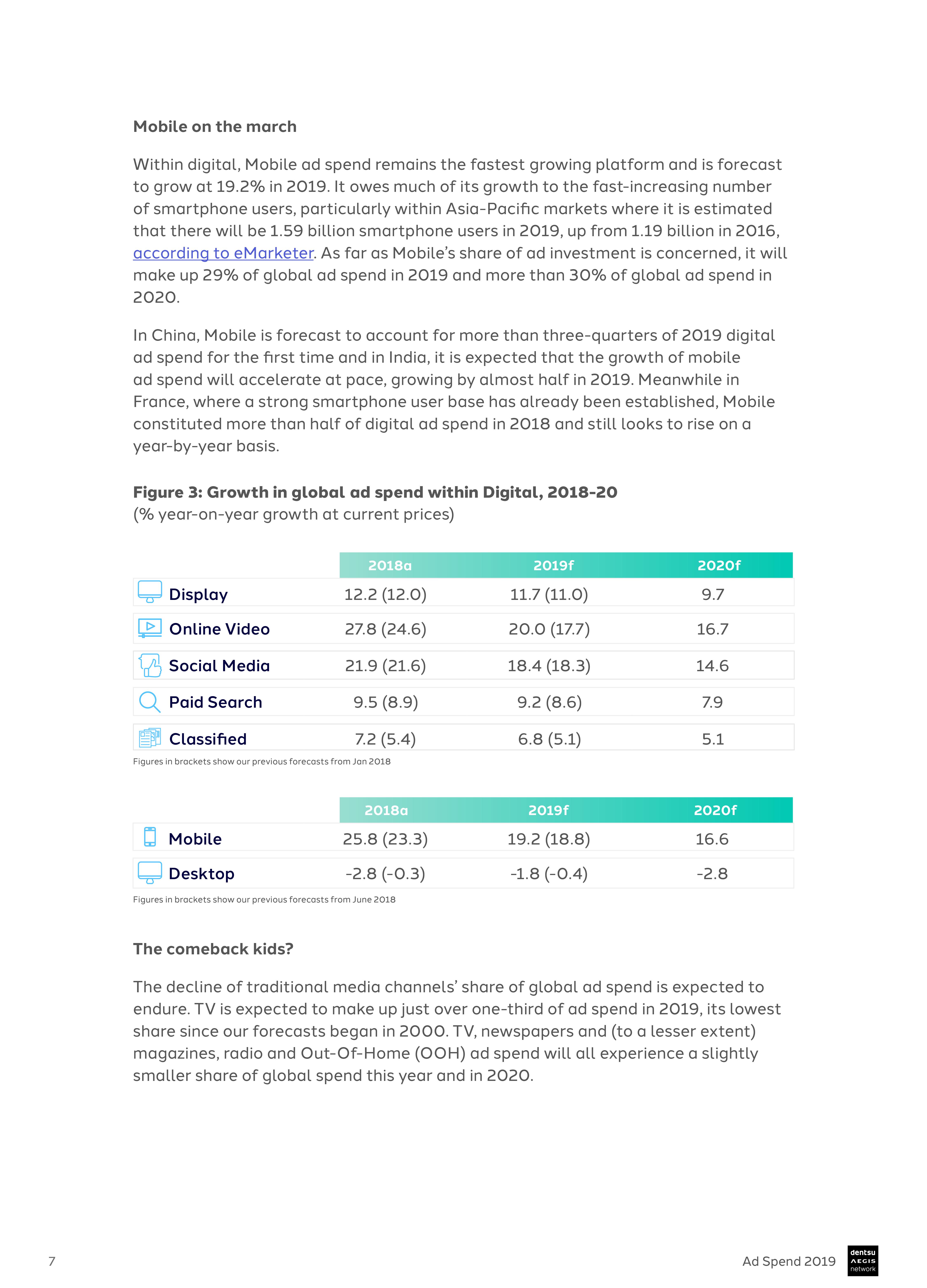 网络广告依然是支出的主导力量,预计2019年的份额将首次超过40%。