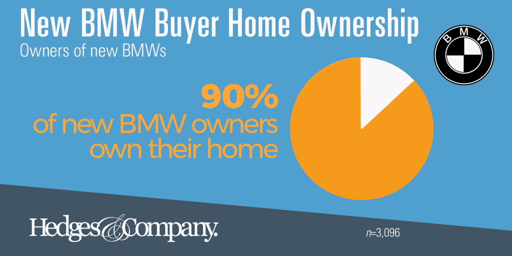 由于宝马车主的家庭收入高,平均年龄也大,所以拥有房子的几率也很高。90%的宝马新买家有自己的房子。从全国来看,只有64-67%的美国人拥有自己的住房。宝马新车主的房价平均值317200美元。