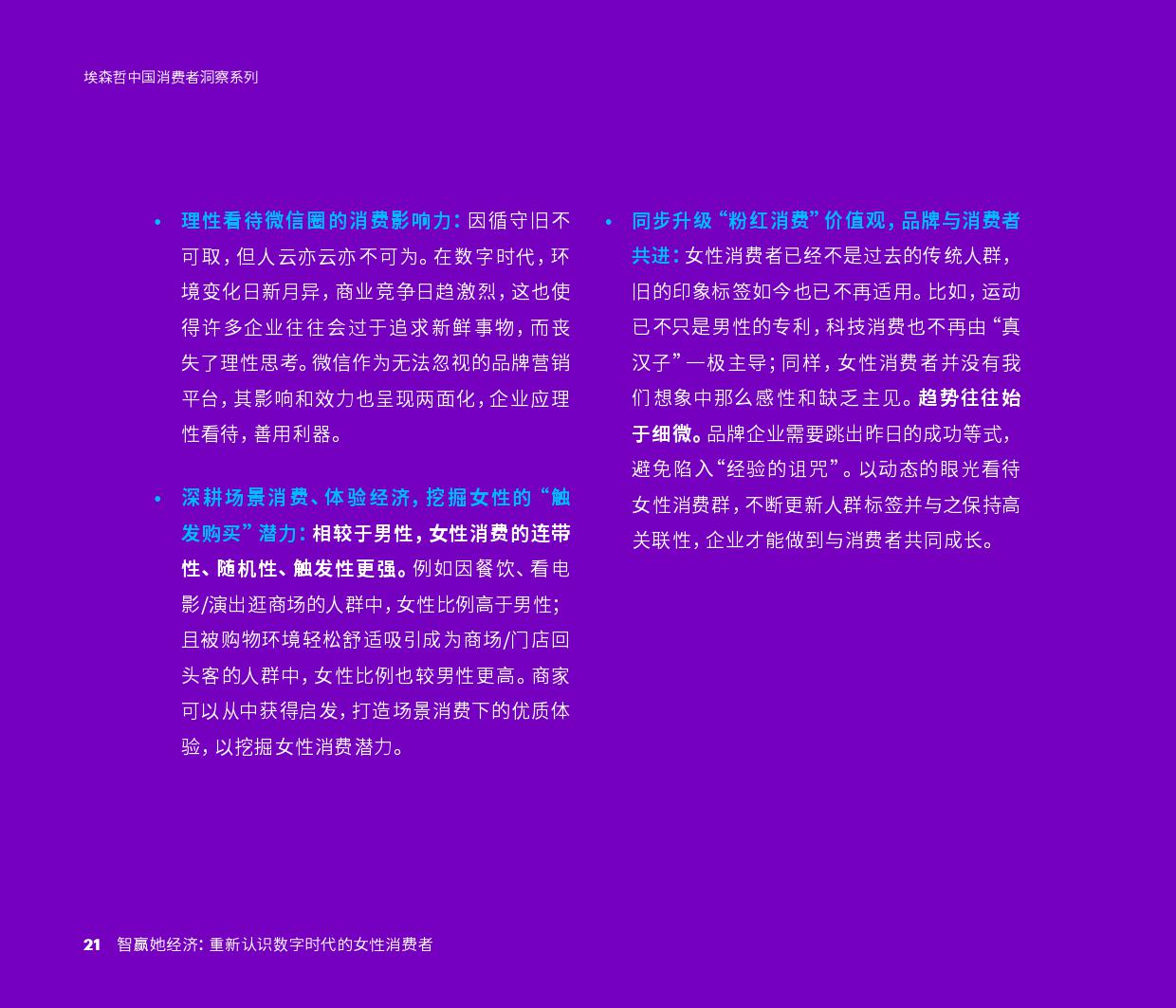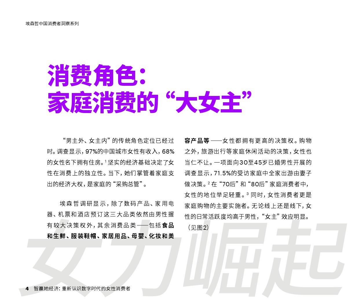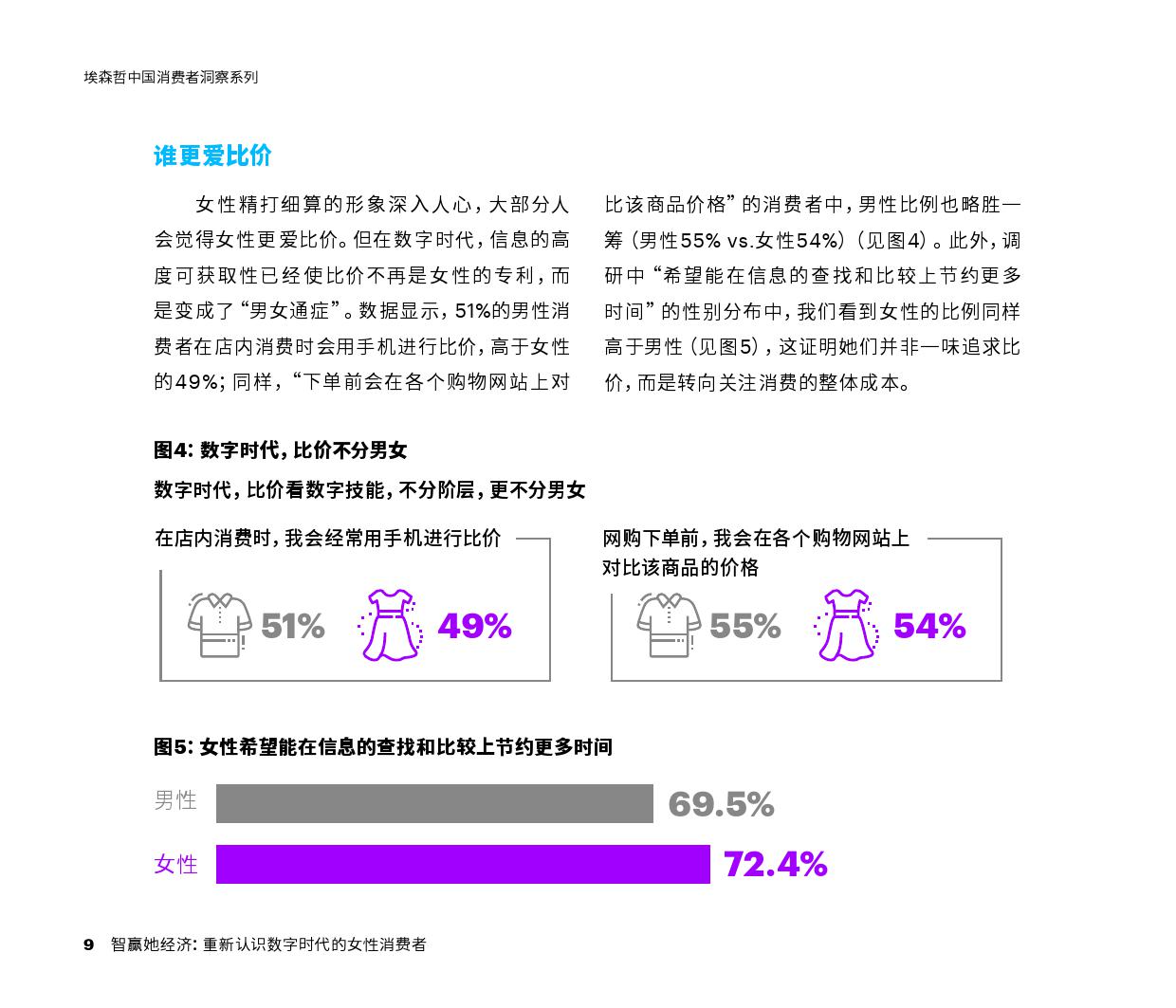 埃森哲在最新报告《智赢她经济》中刻画了当下中国女性消费群体的画像,研究了女性消费者在消费观念、偏好、行为趋势等方面的变化,并探究了一些有趣的话题,例如,女性更爱比价吗?女性更偏爱线上购物吗?科技对女性消费者产生了多大的影响?我们邀请您一同来阅读这份报告,传播关于“她”经济的各种洞察。