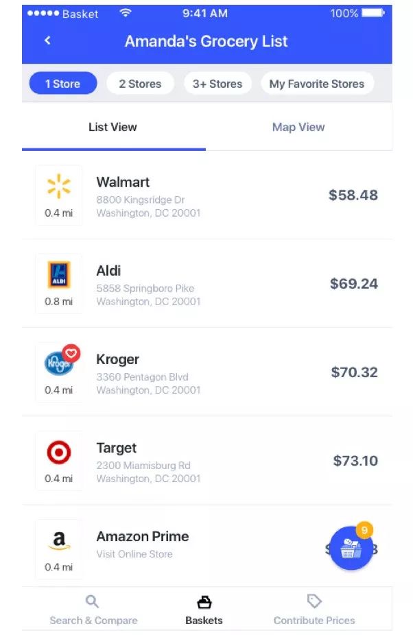 本周你可能会去杂货店——但你确定你付的是最优惠的价格吗?Basket是一个告诉人们这一点的应用程序。它允许用户搜索产品,找出哪个商店的商品价格最优惠,并输入他们自己的第一手数据。然后它利用这些数据给品牌提供关于促销和销售的实时信息。这款应用在全美50个州拥有数十万用户和2000名商务负责人。