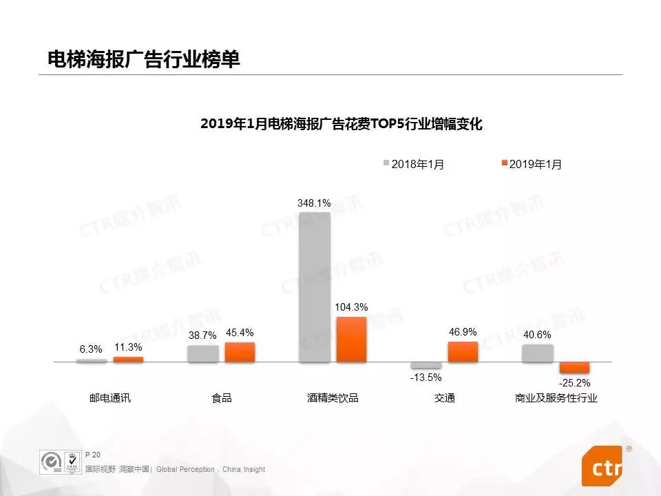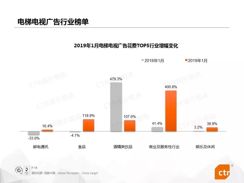 此外,食品行业在电梯电视广告花费同比上涨118.9%,其在电梯海报媒体的广告花费同比上涨45.4%,行业的增长主要源于良品铺子、伊利、福临门等品牌的投放。