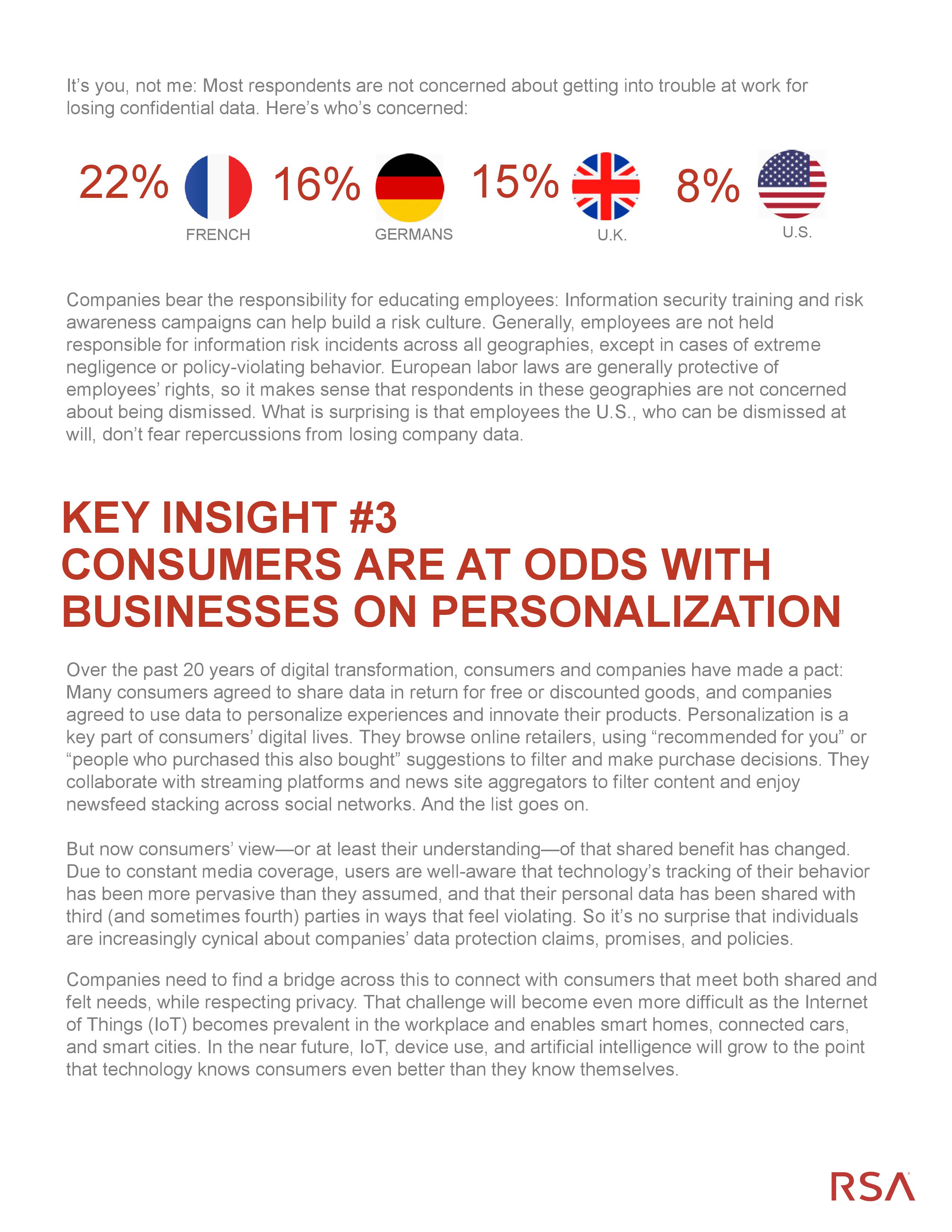 个性化仍然是一个难题:研究表明个性化体验增加了用户的活动和购买量。但是,调查结果显示受访者不希望以隐私为代价的个性化服务。事实上,只有17%的受访者认为量身定做的广告是合乎道德的,只有24%的人认为个性化的新闻提要是合乎道德的。