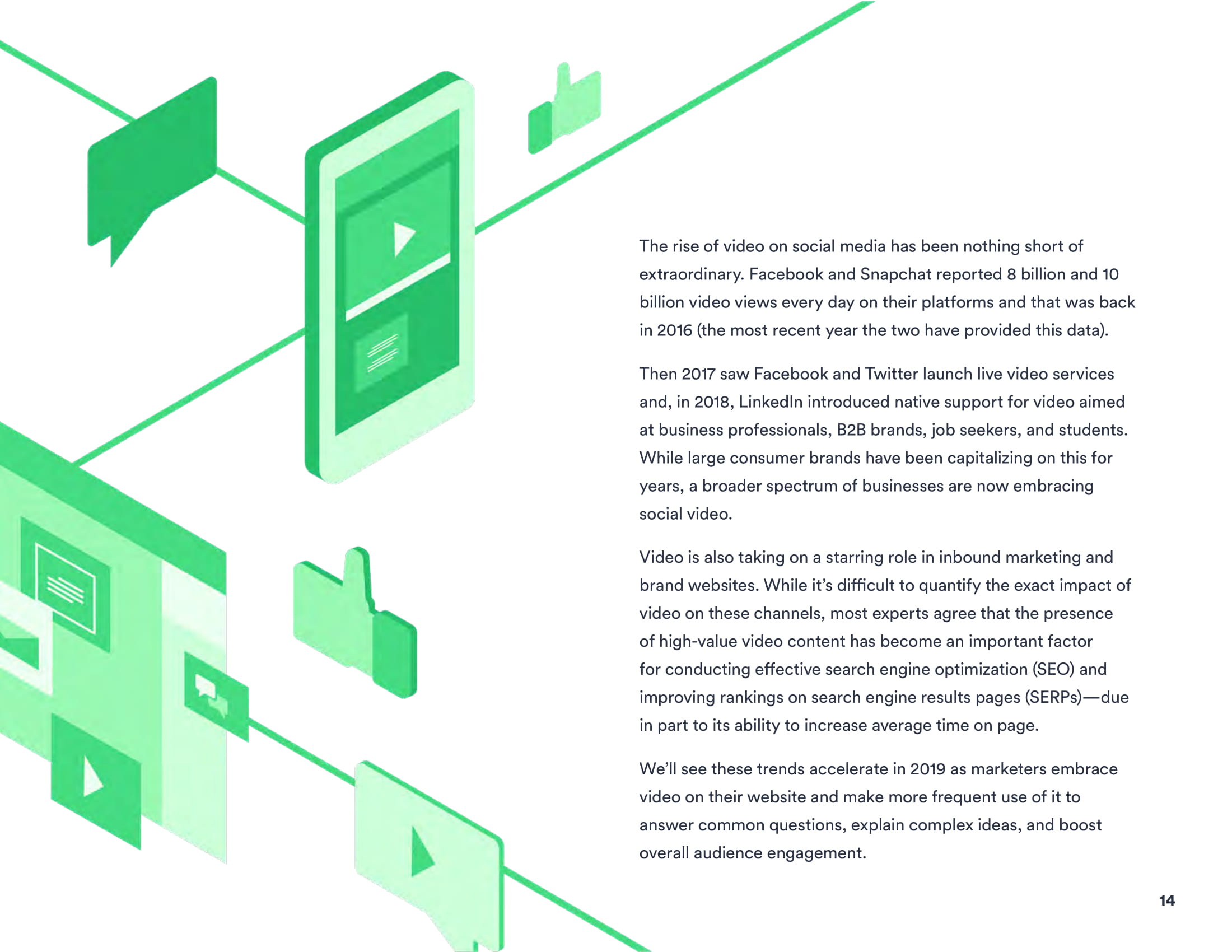 以社交为主的视频:更多的企业为LinkedIn、Facebook和YouTube创建视频,导致短篇视频和可点击视频的激增。
