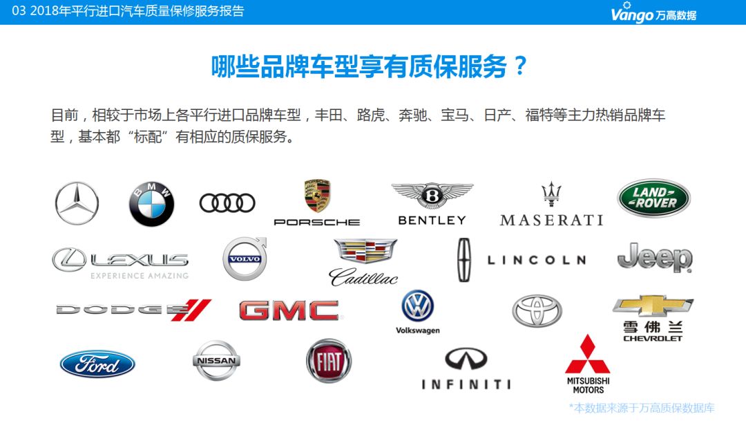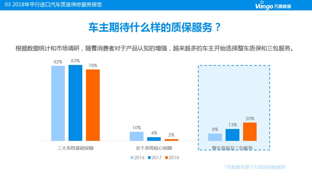 《平行进口汽车质保市场发展报告》以年度报告的形式,自2016年起连续发布两年,每次发布都受到业界的广泛好评和强烈关注。第三年,万高如约而至,再度发布《2018年中国平行进口汽车质保市场发展报告》,为平行进口汽车质保市场发展提供有力支持。