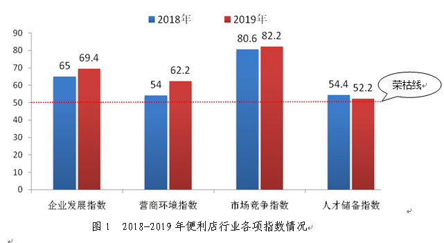 本次调查结果显示,2018年便利店企业发展指数为65.0,营商环境指数54.0,市场竞争指数80.6,人才储备指数54.4,均高于荣枯线50.0。中国便利店头部企业以及区域龙头便利店企业仍然保持着较为稳健的发展速度。