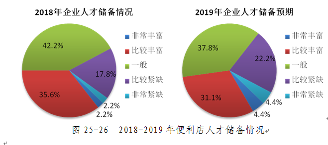 人才储备情况方面,多数便利店企业认为2018年企业的人才储备情况不容乐观,占比60.0%;并且认为2019年的人才储备情况将会愈发紧缺。