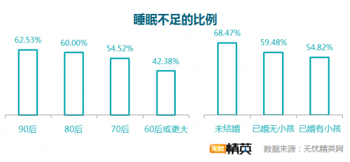 无忧精英网发起了《白领睡眠情况》调查,共有8036位职场精英(工作2年+,年薪10W+)参加了本次调研。调查显示,超六成职场精英睡眠不足,更有两成人容易失眠,加班和舍不得睡觉成年轻人晚睡的主要原因。