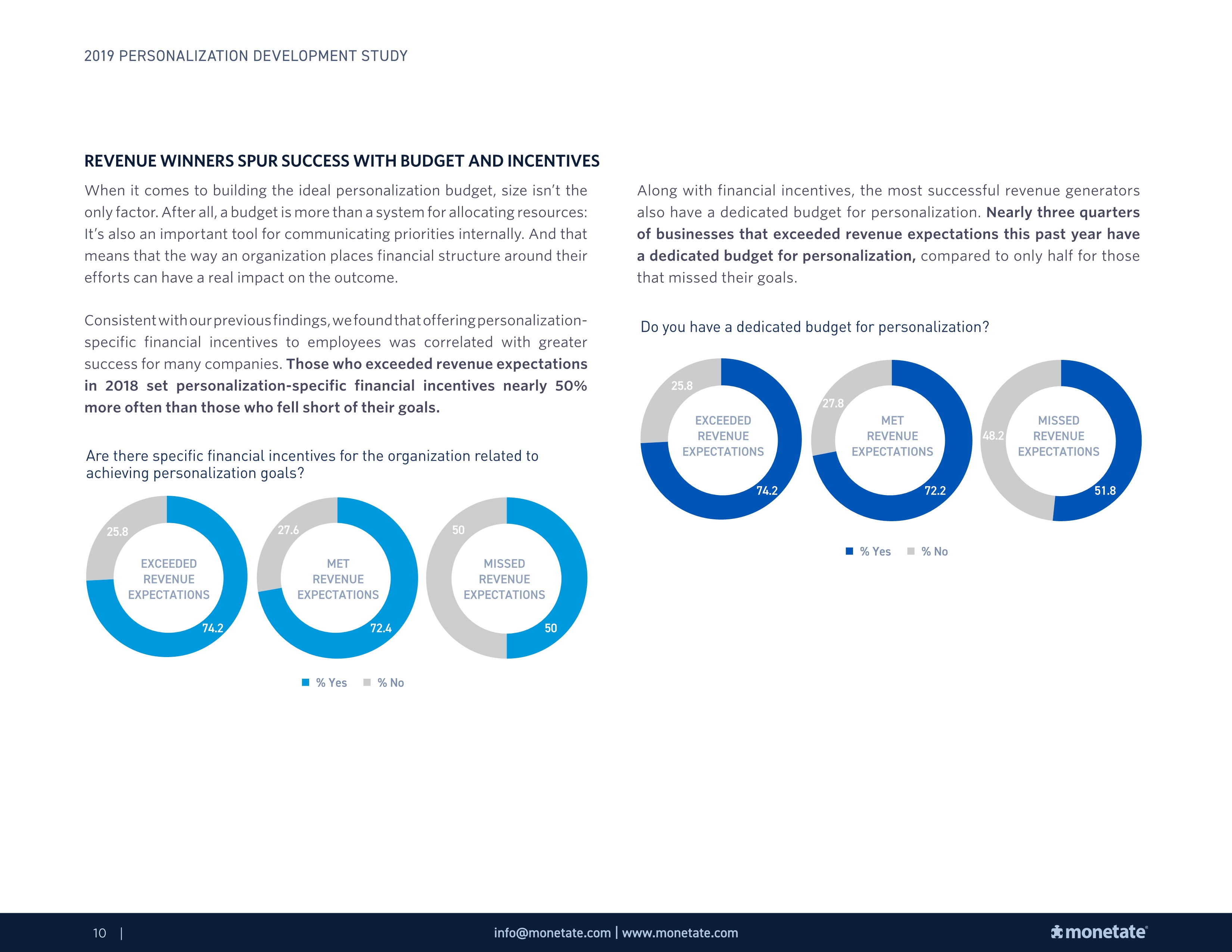 2018年超过收入预期的企业中有74%有专门的个性化预算。