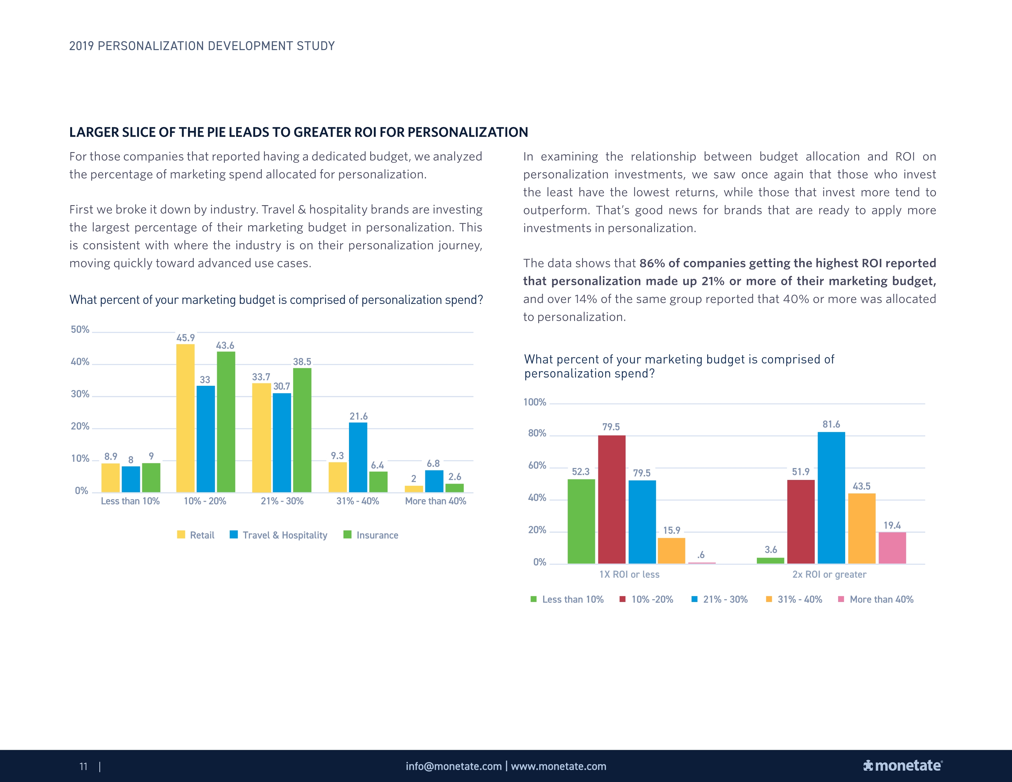 86%的高投资回报率的公司表示个性化在他们的营销预算中占21%或更多。