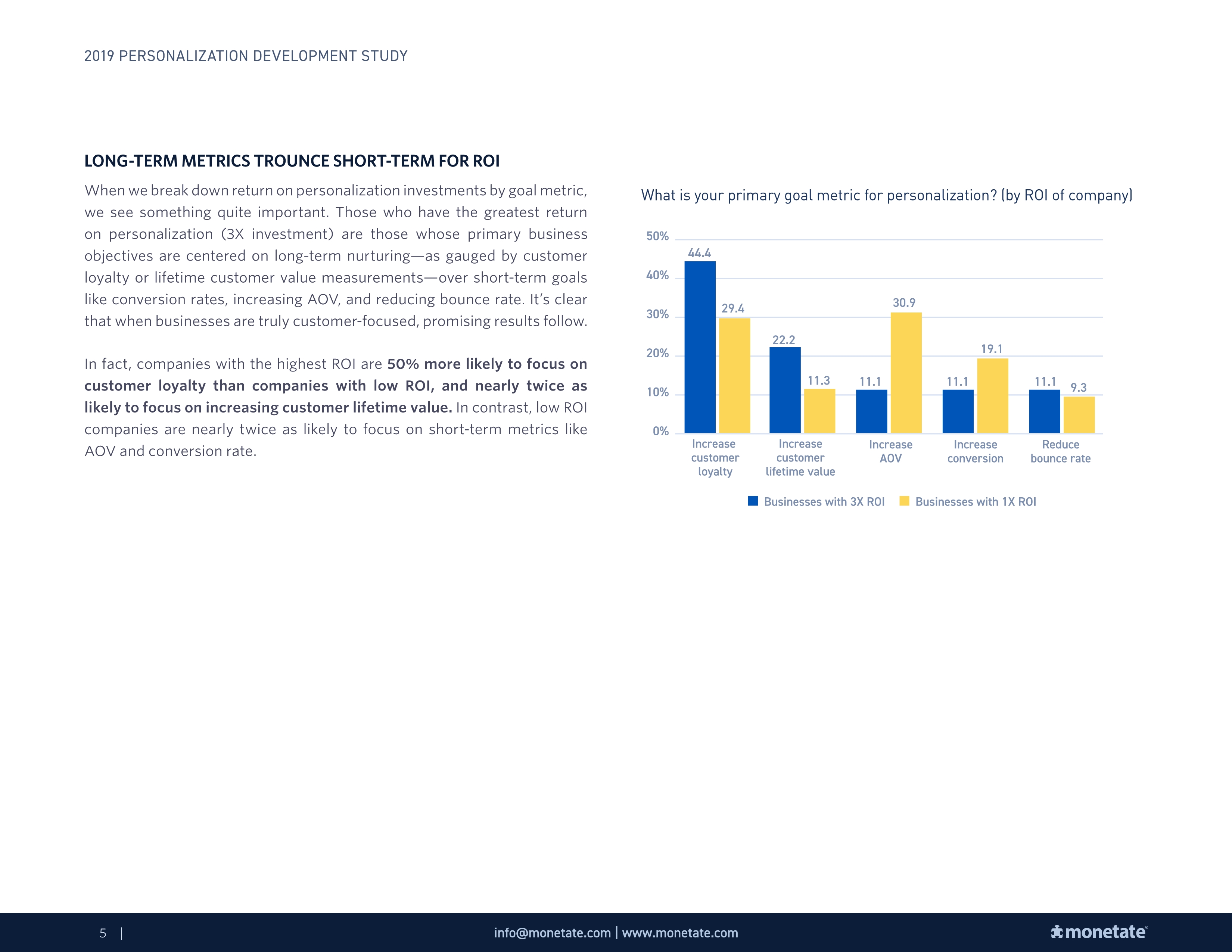 投资回报率最高的公司比投资回报率低的公司更可能将客户忠诚度作为个性化的主要业务指标,可能性高出50%。前者对客户终身价值的关注是后者的两倍。