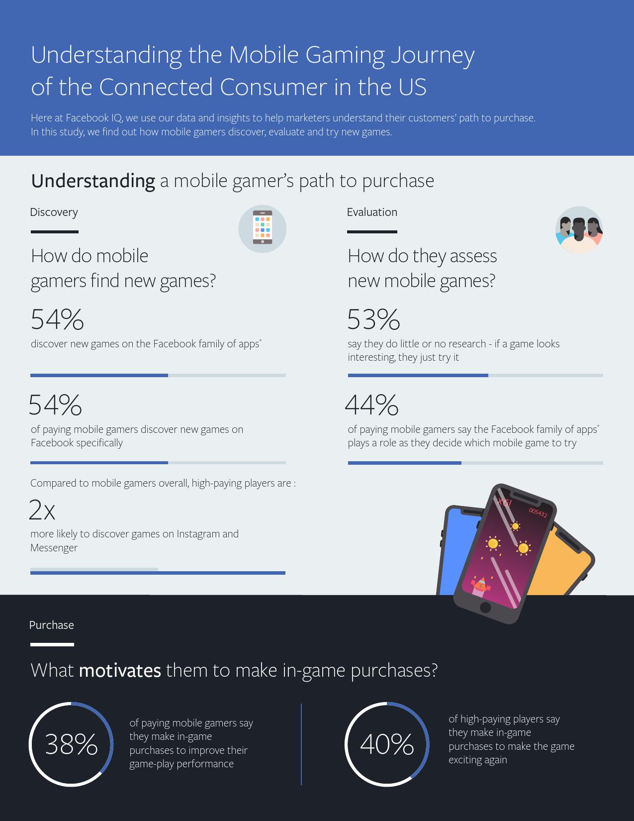 通过了解人们下载游戏的原因、对游戏的评价,以及推动他们持续玩游戏的因素,移动游戏营销者或许能够一直创造收入,同时制作出玩家喜闻乐见的内容。为了助营销者一臂之力,Facebook IQ 委托 Accenture 于 2018 年 6-7 月在日本调查了 1,007 名年满 18 岁的移动游戏玩家。本文聚焦以下三类受众:移动游戏玩家2、付费移动游戏玩家3和高消费移动游戏玩家4。 本文所引用的全部数据均来自委托 Accenture 开展的这项调研,除非另有说明。