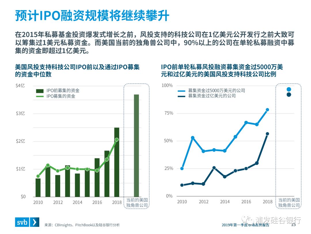 但是,让我们取得今天成绩的许多因素还会让我们走的更远。经过私有市场十年的支持,2019年准备IPO企业的估值已经无与伦比。现在的独角兽公司通过IPO募集的资金,几乎是风投支持的科技公司IPO融资的历史平均水平的四倍。随着科技对长期未受影响行业的影响力逐渐增强,企业家面临的新机遇依然不断涌现。