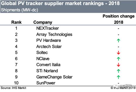 2018年,有7家光伏跟踪器供应商的年出货量超过1吉瓦。这个吉瓦级军团里的常驻成员包括Nextracker和Array Technologies,在2017年则加入了新成员Soltec。现在,PV Hardware、Arctech Solar、NClave和Convert Italia也都已经跨过了同级门槛。