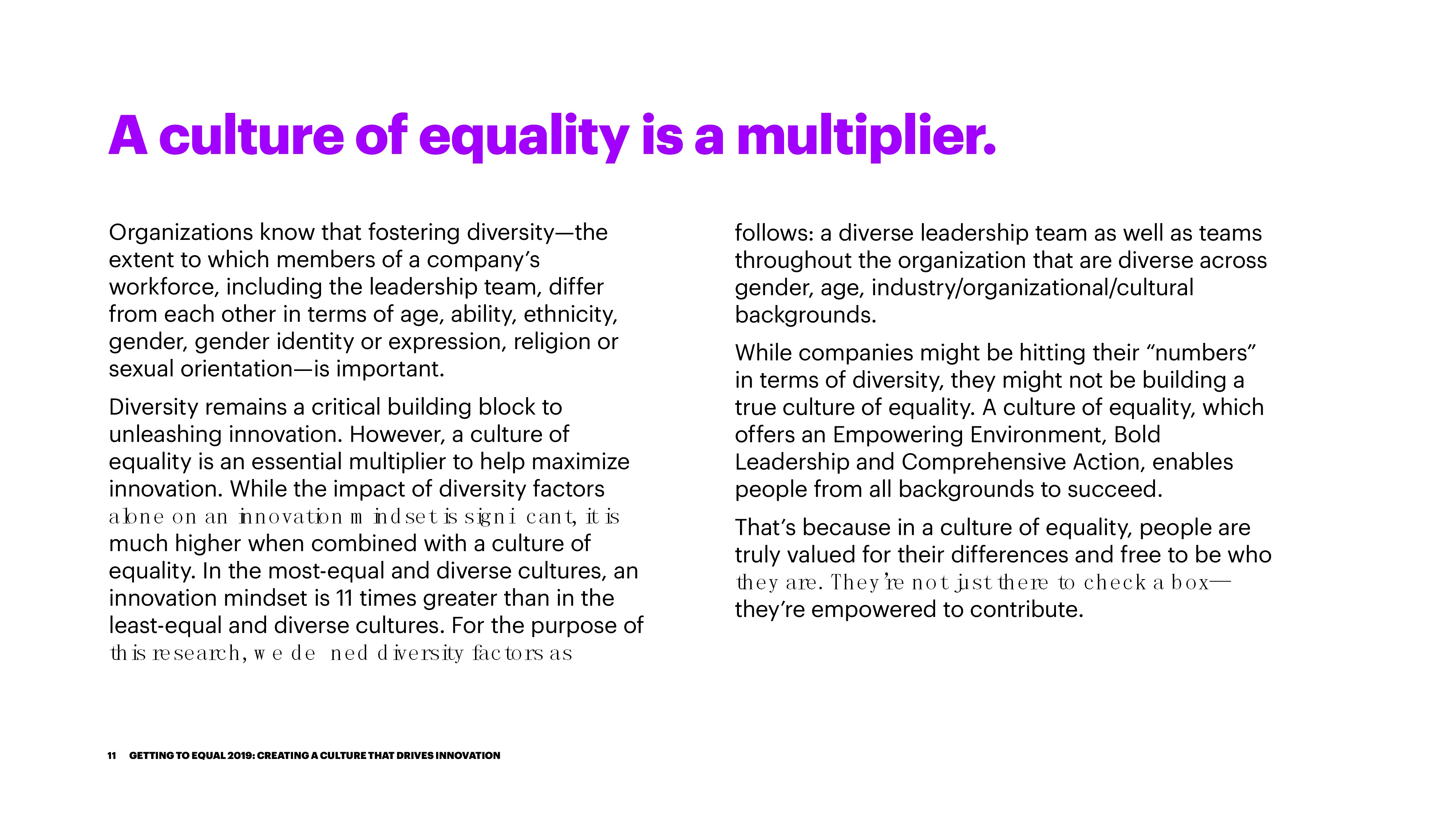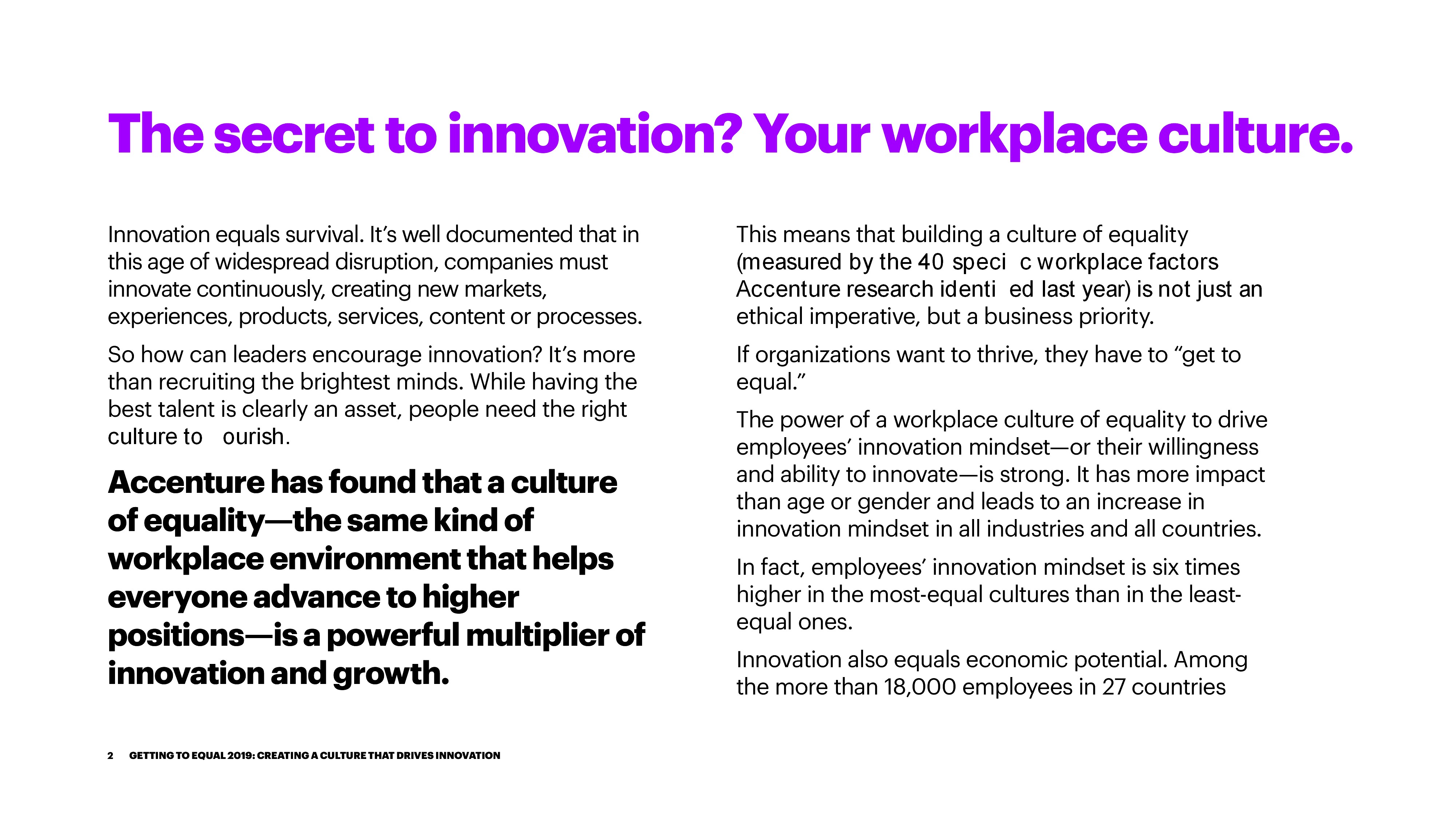埃森哲发布了新报告“平等=创新”,工作场所的平等文化是创新和增长的强大动力。
