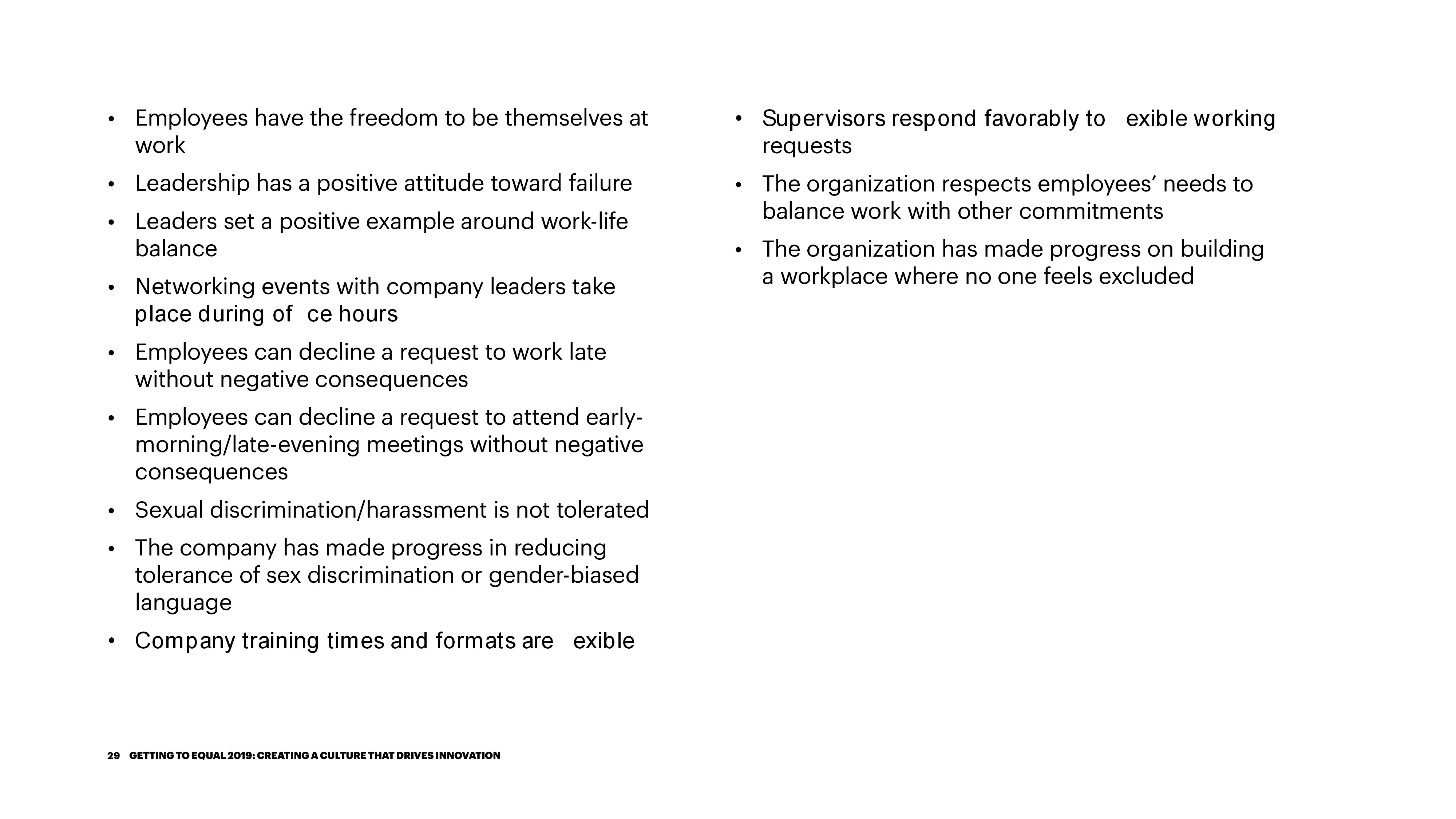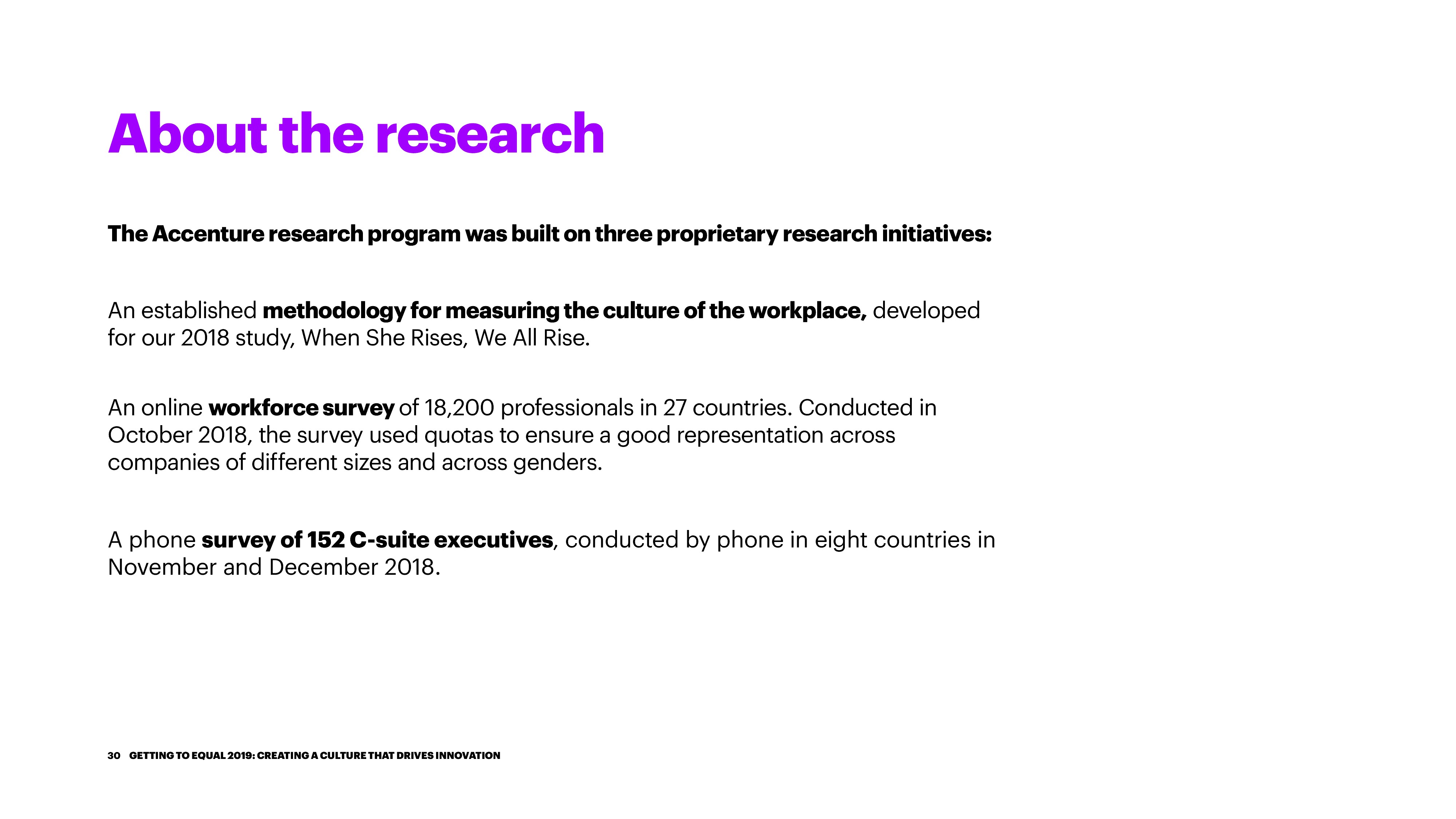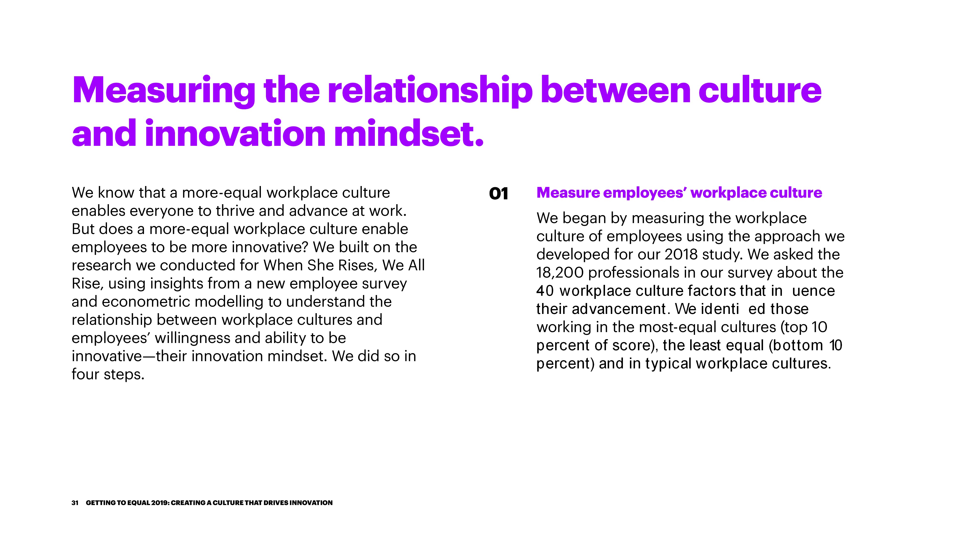 埃森哲的新研究确定了40个有助于形成平等文化的工作场所因素,并将它们分为三个可采取行动的类别:大胆的领导、全面的行动和赋权环境。