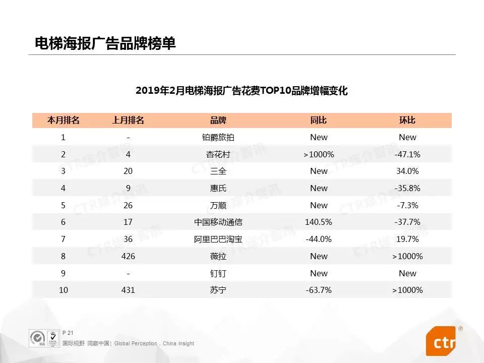 2月份,商业及服务性行业在电梯媒体的广告花费上涨,增长主要源于婚纱摄影服务商铂爵旅拍的大量投放。根据数据显示,铂爵旅拍的广告花费占电梯电视总收入的16.5%,占电梯海报总收入的10.9%。