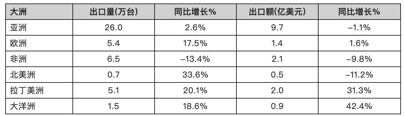 从2017年柴油发电机组出口大区分布看,亚洲市场仍然是中国柴油发电机组的主要出口目的地,出口量和出口额均接近60%。从同比增长来看,欧洲、拉丁美洲和大洋洲在出口量和出口金额方面均有不同程度的增长。