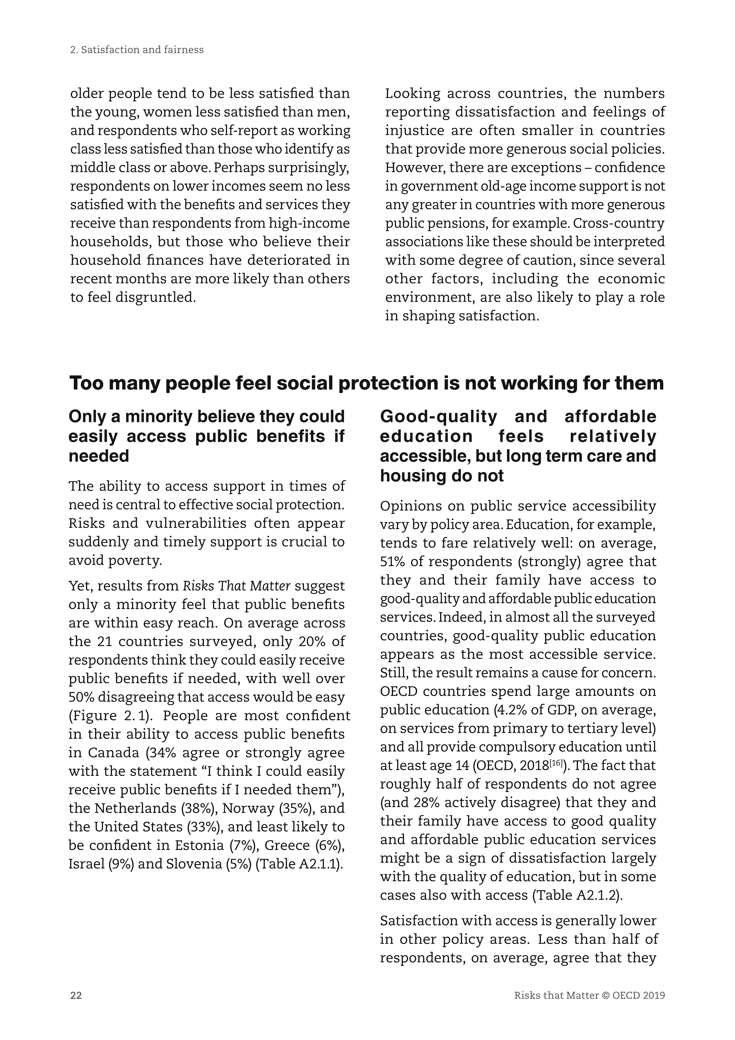 在各个国家,大量的受访者认为公共福利和服务很难获得,许多人在失去收入时对政府提供足够支持的能力缺乏信心。