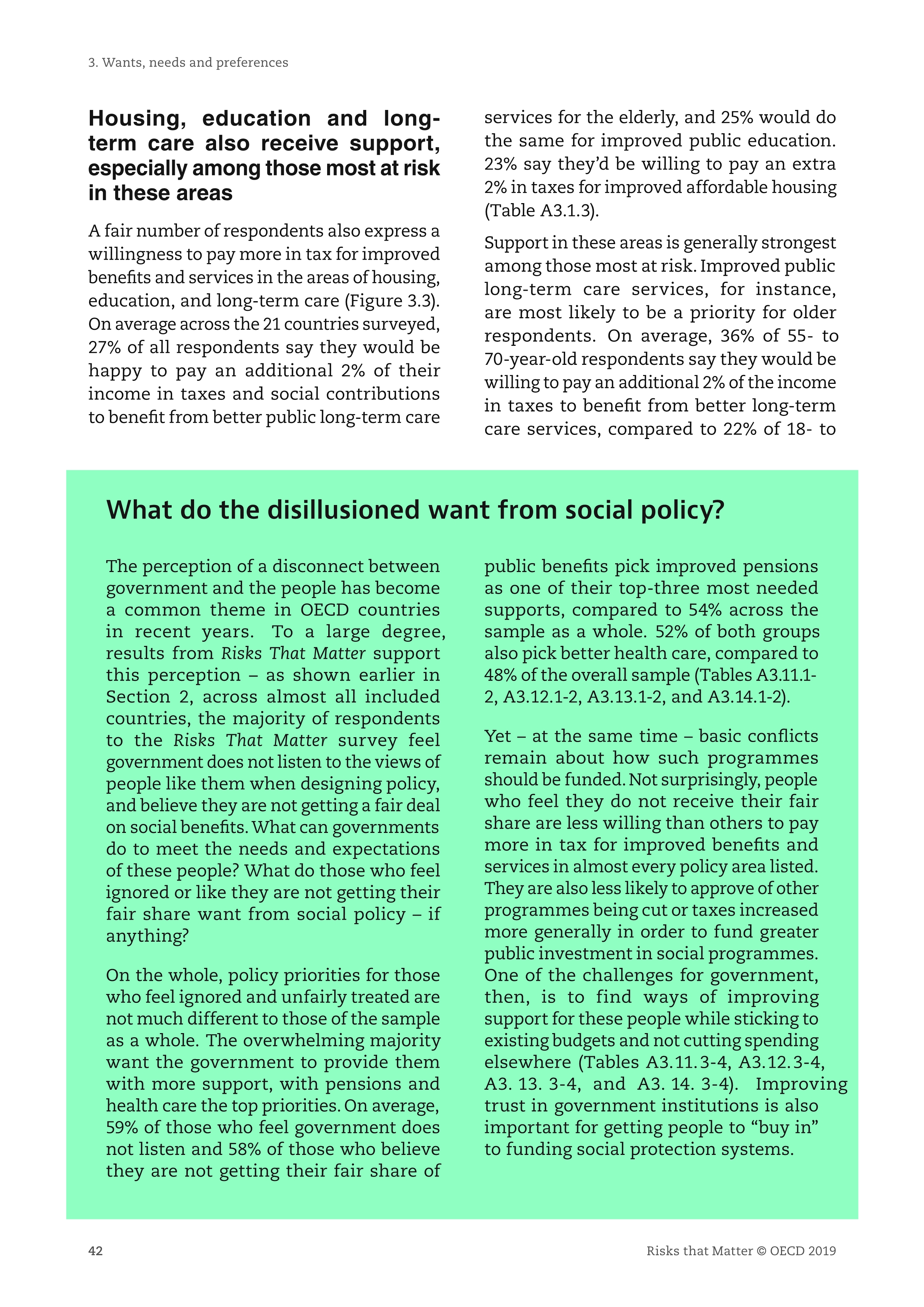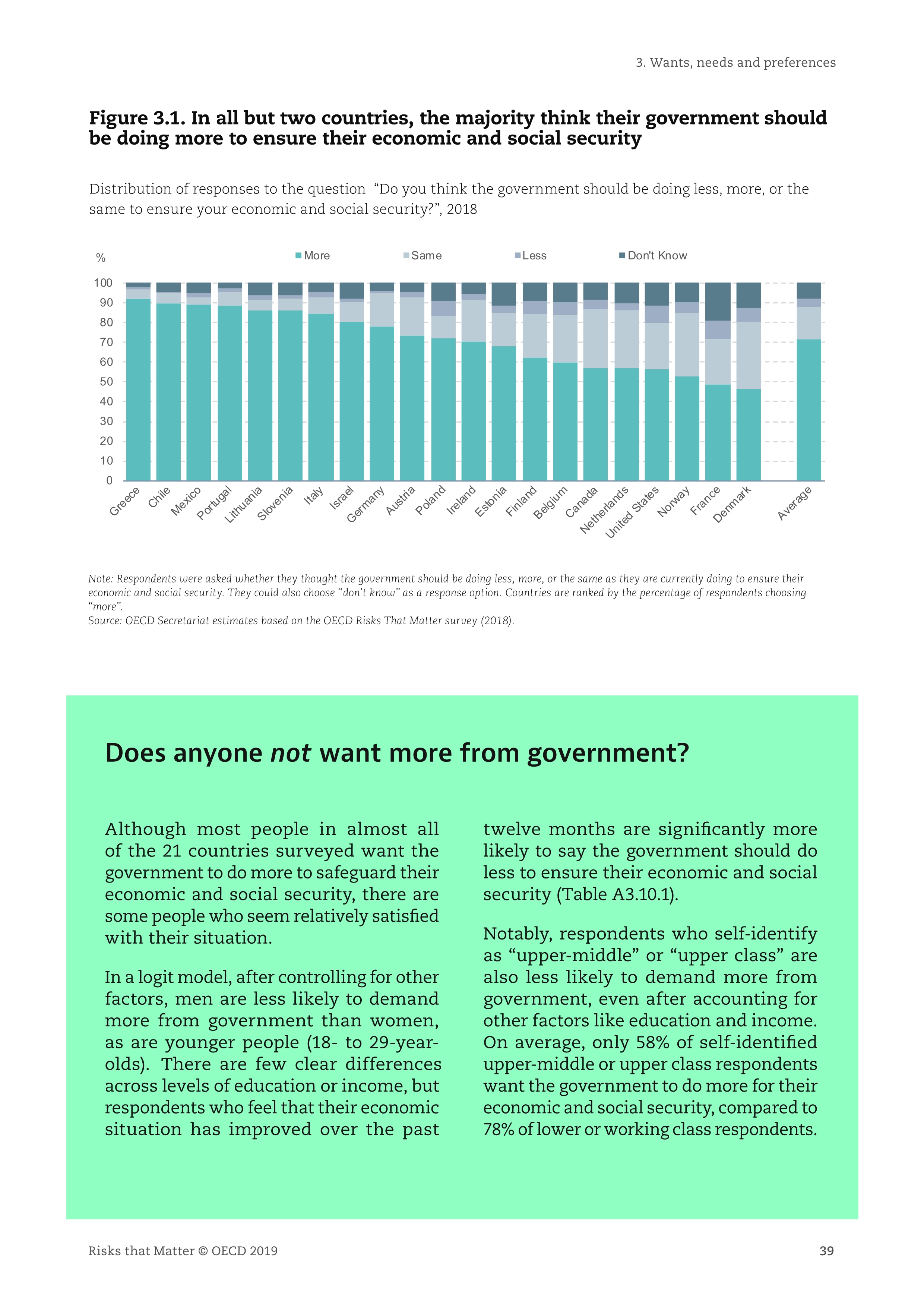 经合组织各国政府正在探索许多新方式来执行社会政策,政府与公众正确接触、倾听人们的声音才能发现人们正在挣扎的地方,完全满足人们的需求和期望,以及给予他们最需要的支持。