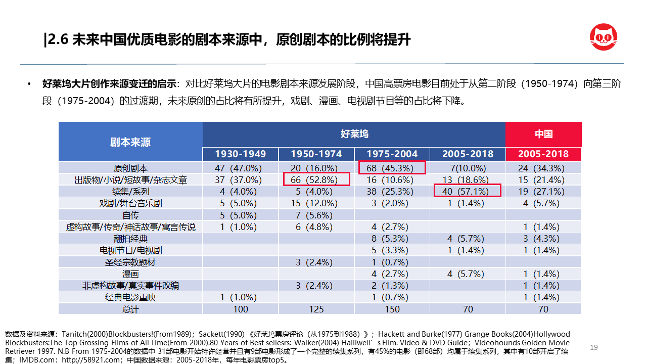 一、未来中国优质电影的剧本来源中,原创剧本的比例将提升