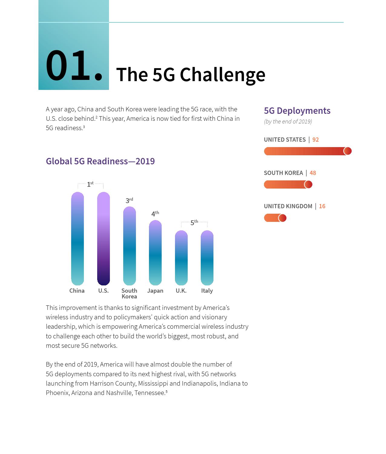 美国无线通信和互联网协会(CTIA)周二发布通信咨询公司Analysys Mason为该协会所作的研究报告。Analysys Mason的研究连续第二年对各国的5G准备情况进行了排名。美国过去一年在5G准备就绪方面领先于韩国,从2018年的第三名升至与中国并列第一。其次是韩国,日本和英国。