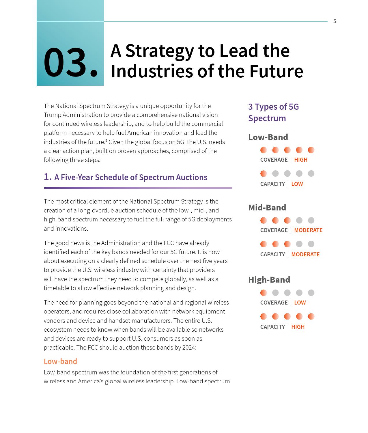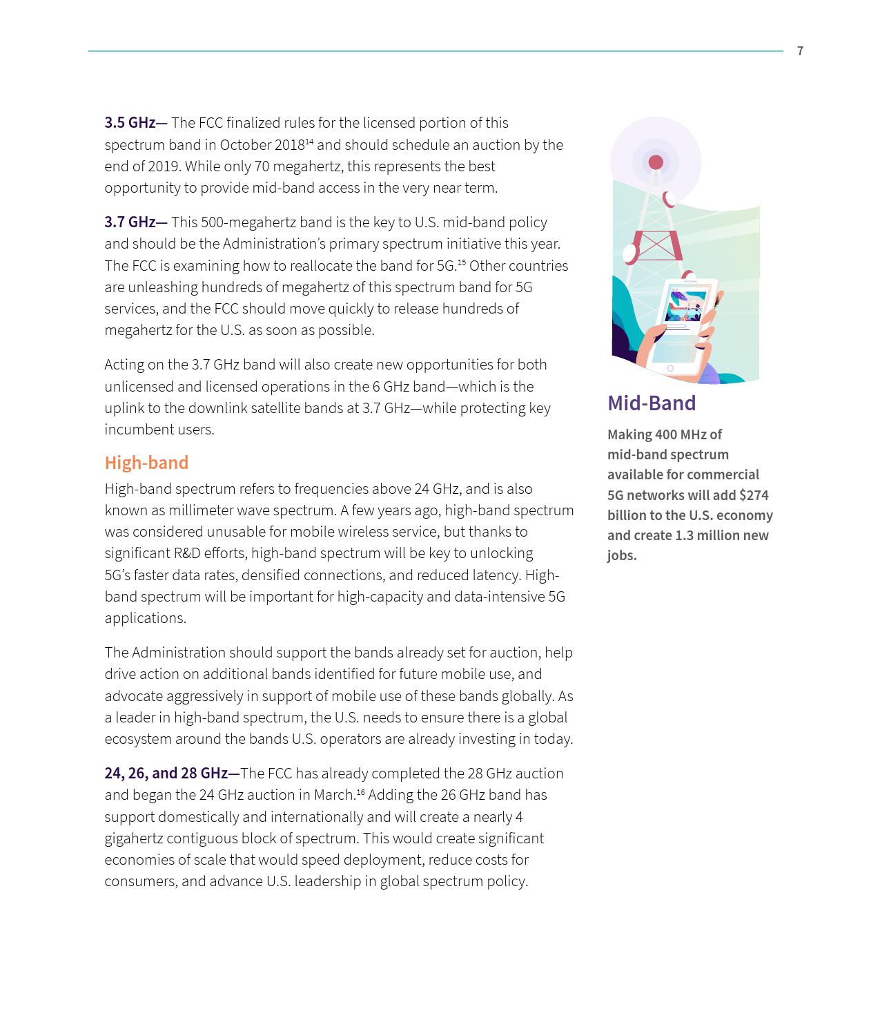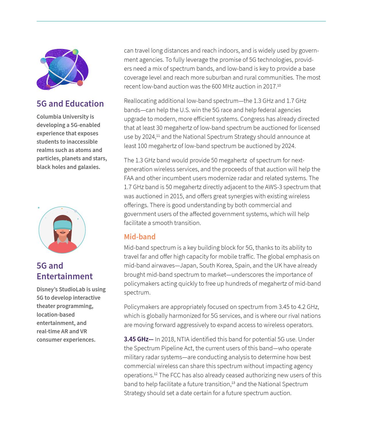 报告认为美国在5G的高频段和低频段可用性方面处于领先地位,但落后于中频段的可用性。中频段对5G至关重要,因为它具有高容量,能够覆盖大片地理区域。