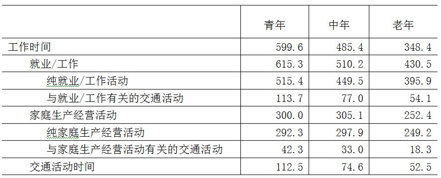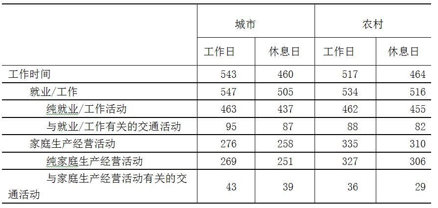 [2] 工作时间即属于国民经济核算体系( SNA) 范畴内的生产活动,包括与居民就业、家庭生产经营活动以及与之相关的交通活动时间。