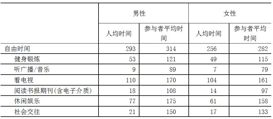 [5] 个人自由支配时间包括健身锻炼、听广播/音乐、看电视、阅读书报期刊(含电子介质)、休闲娱乐和社会交往。