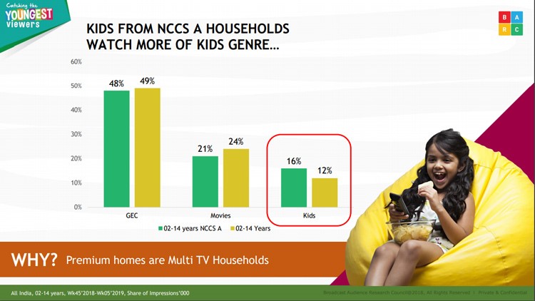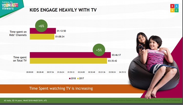 印度广播观众研究理事会(BARC)发布的“捕捉最年轻观众”调查显示,传统电视收视率的21%来自儿童。每四个观众中就有一个是孩子,参与度很高,花费的时间也在上涨。