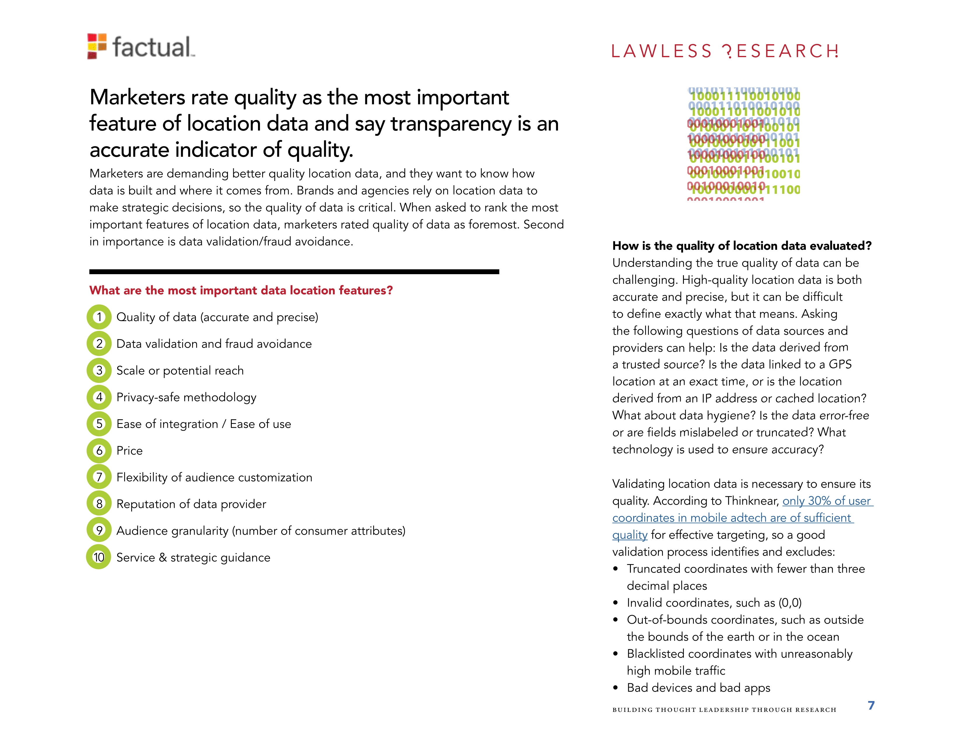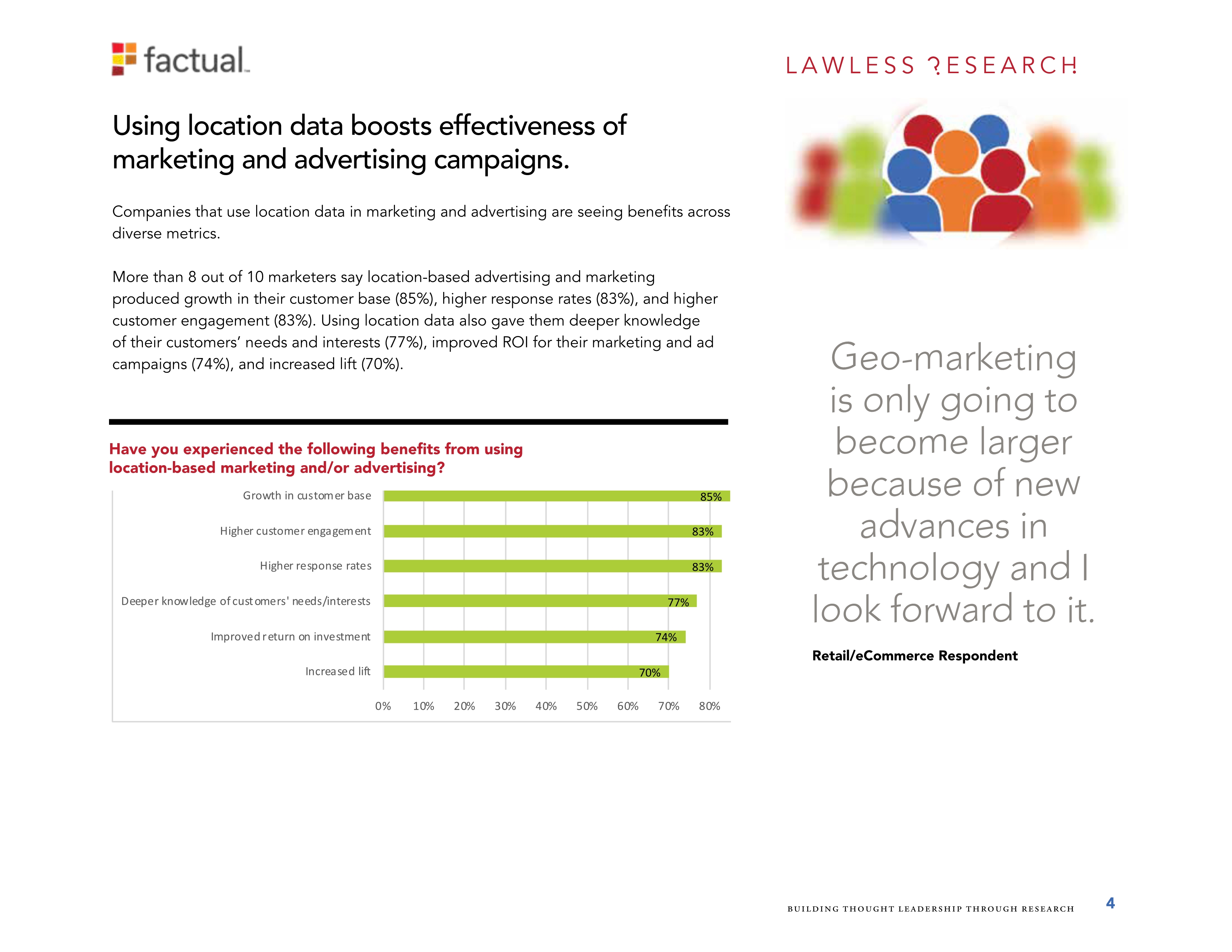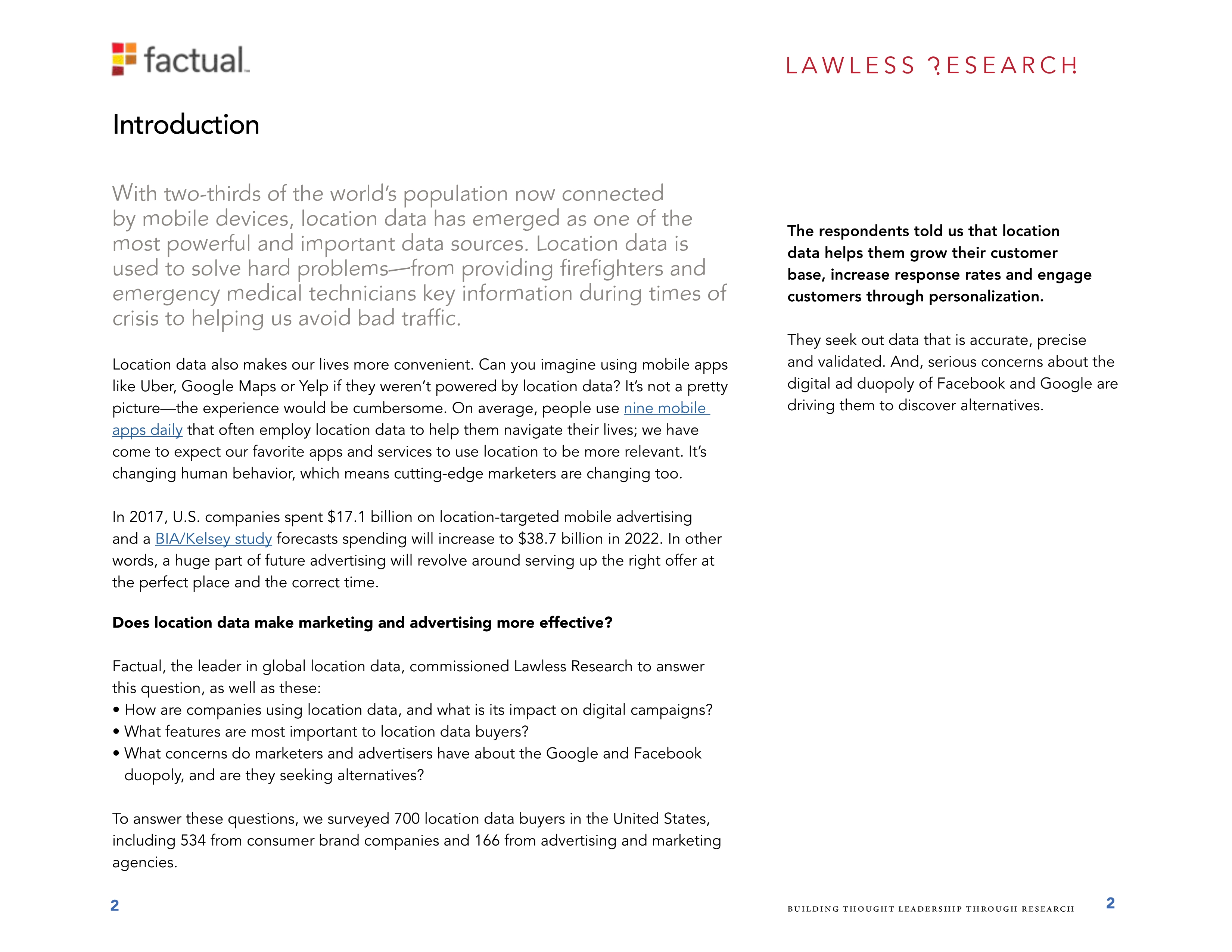 Factual是全球位置数据的领导者。她调查了700个美国的位置数据购买者,其中534个来自消费品牌公司的购买者和166个来自广告和营销机构的购买者。