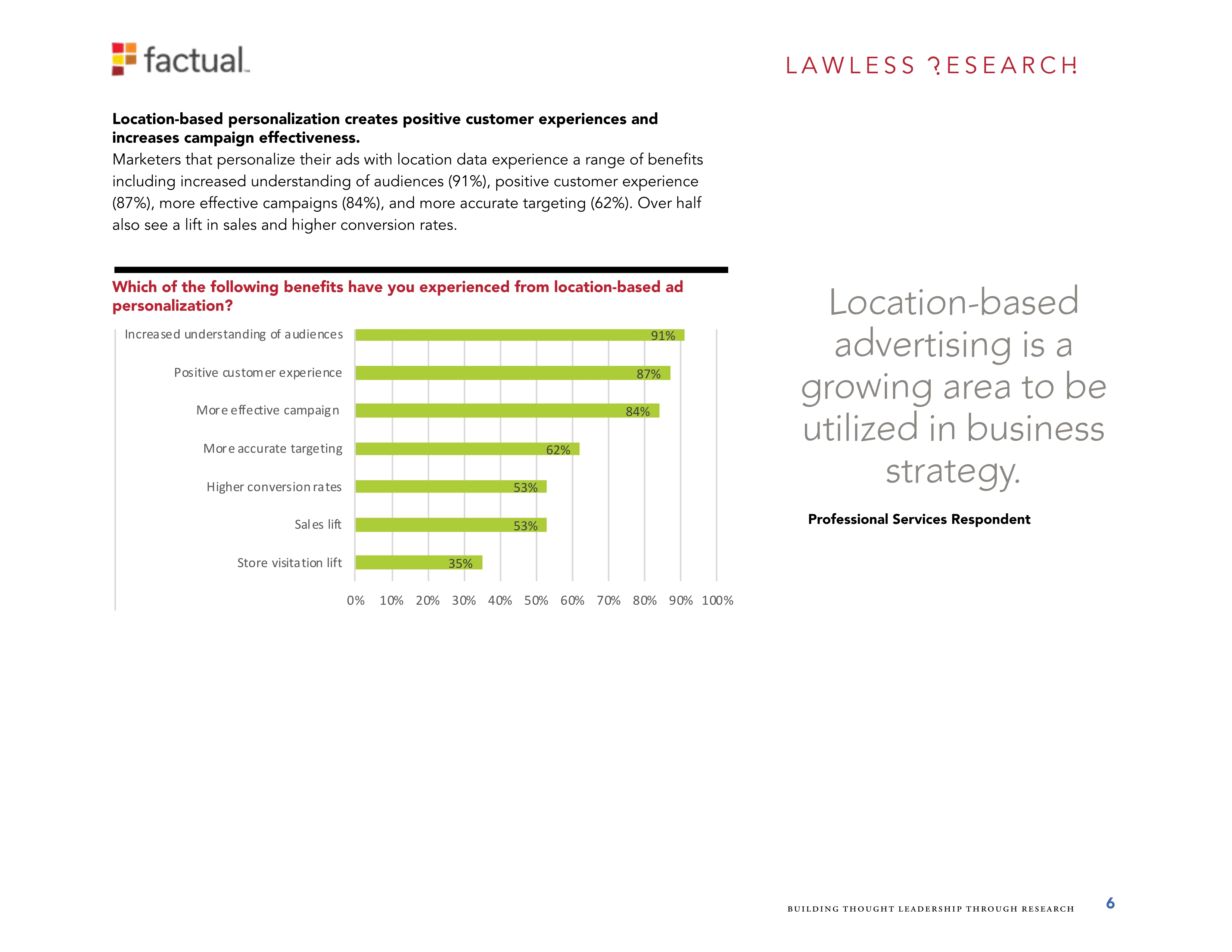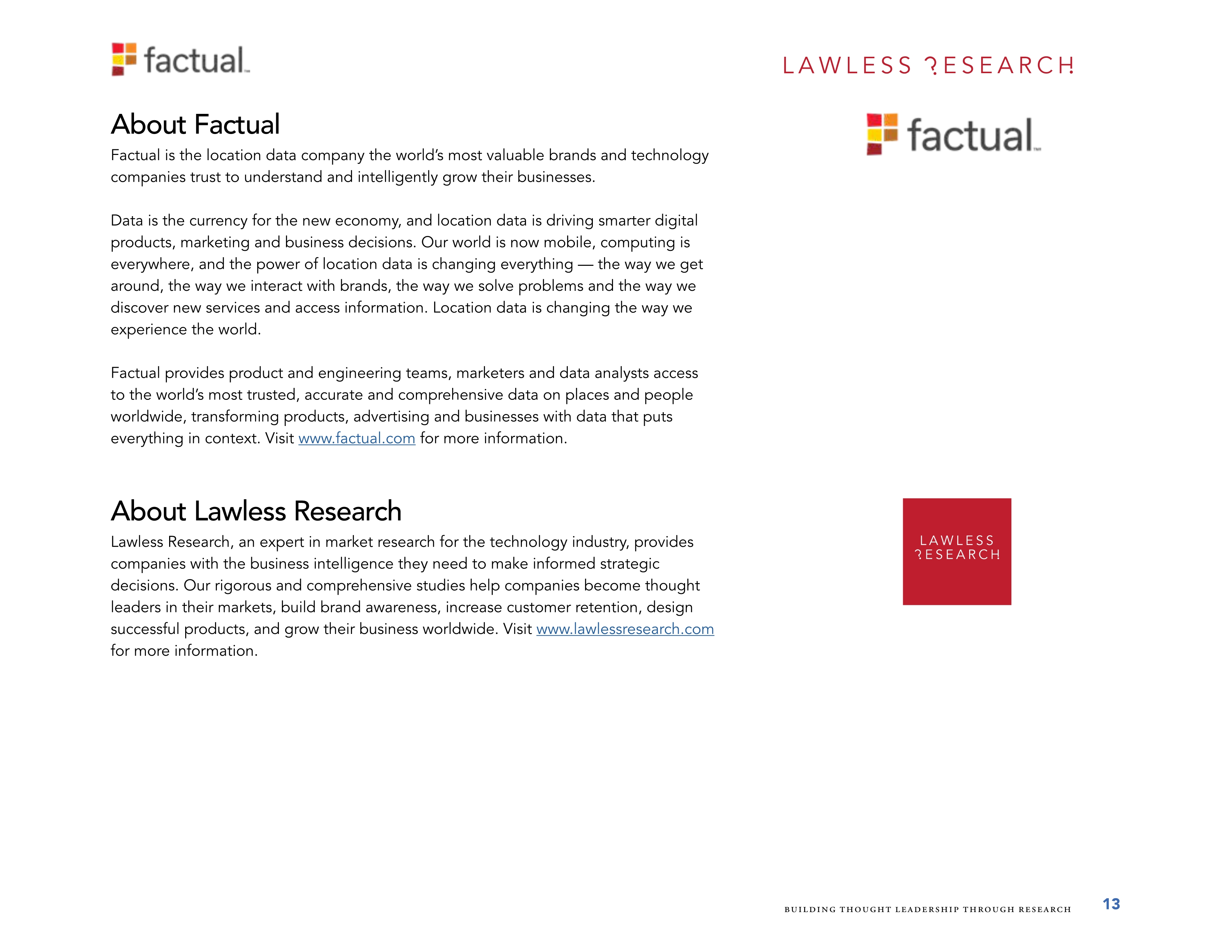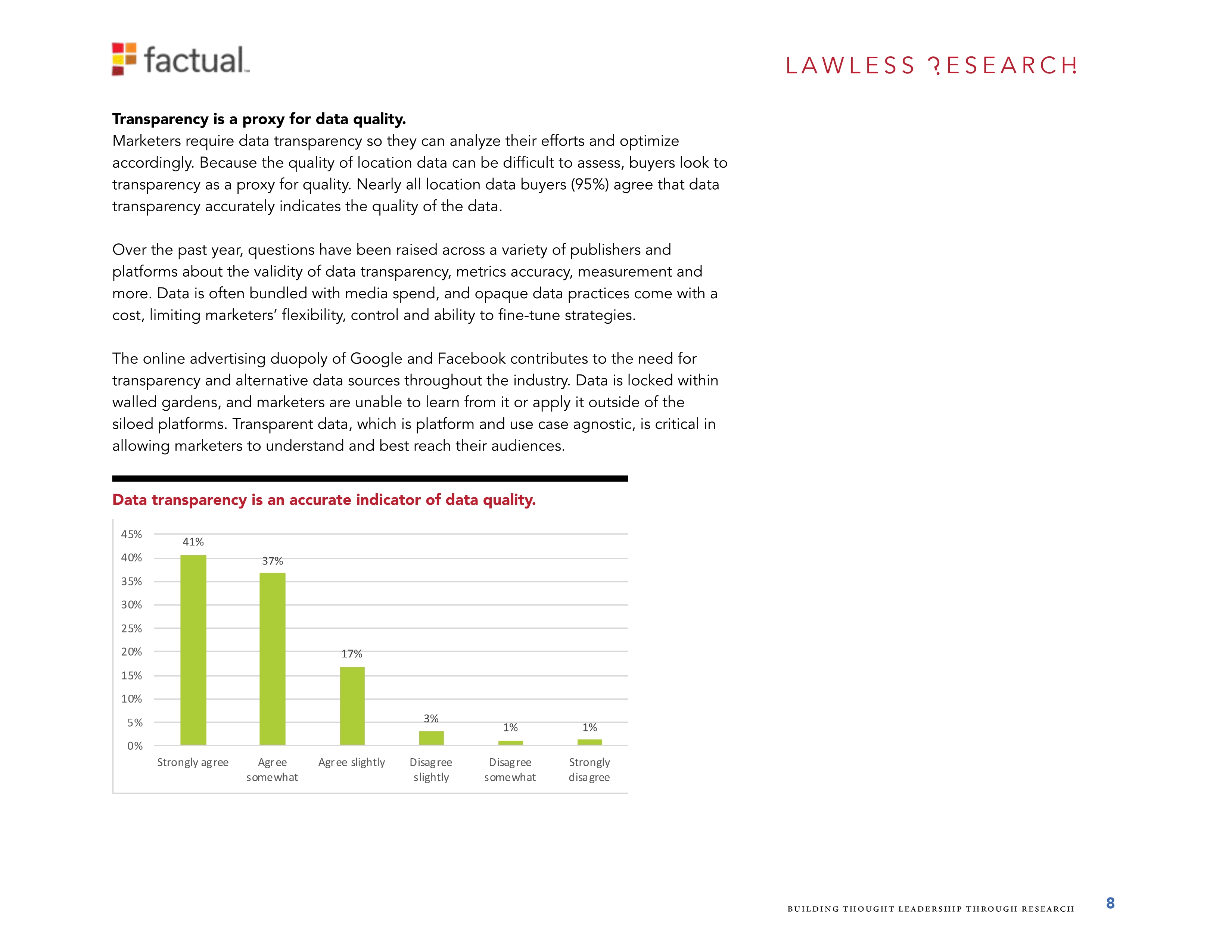 Factual是全球位置数据的领导者。她调查了700个美国的位置数据购买者,其中534个来自消费品牌公司的购买者和166个来自广告和营销机构的购买者。