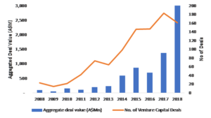 近年来,风险投资额一直在增长,从2013年的约2.3亿美元增长到2016年的6.95亿美元,翻了一番还多。2017年和2018年又翻一番。