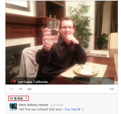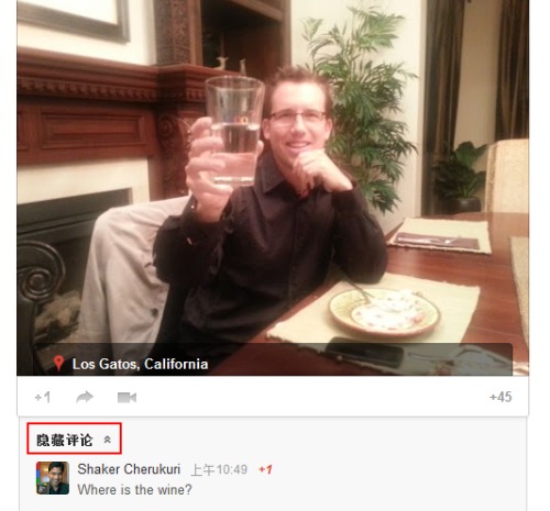 google+里的用户评论,展开评论和隐藏评论被放置在同一个位置,方便用户的展开收起;在评论底部同样给了一个隐藏评论的图标操作;从相同地方展开收起,更易被用户发现和认知,也符合用户的心理预期。