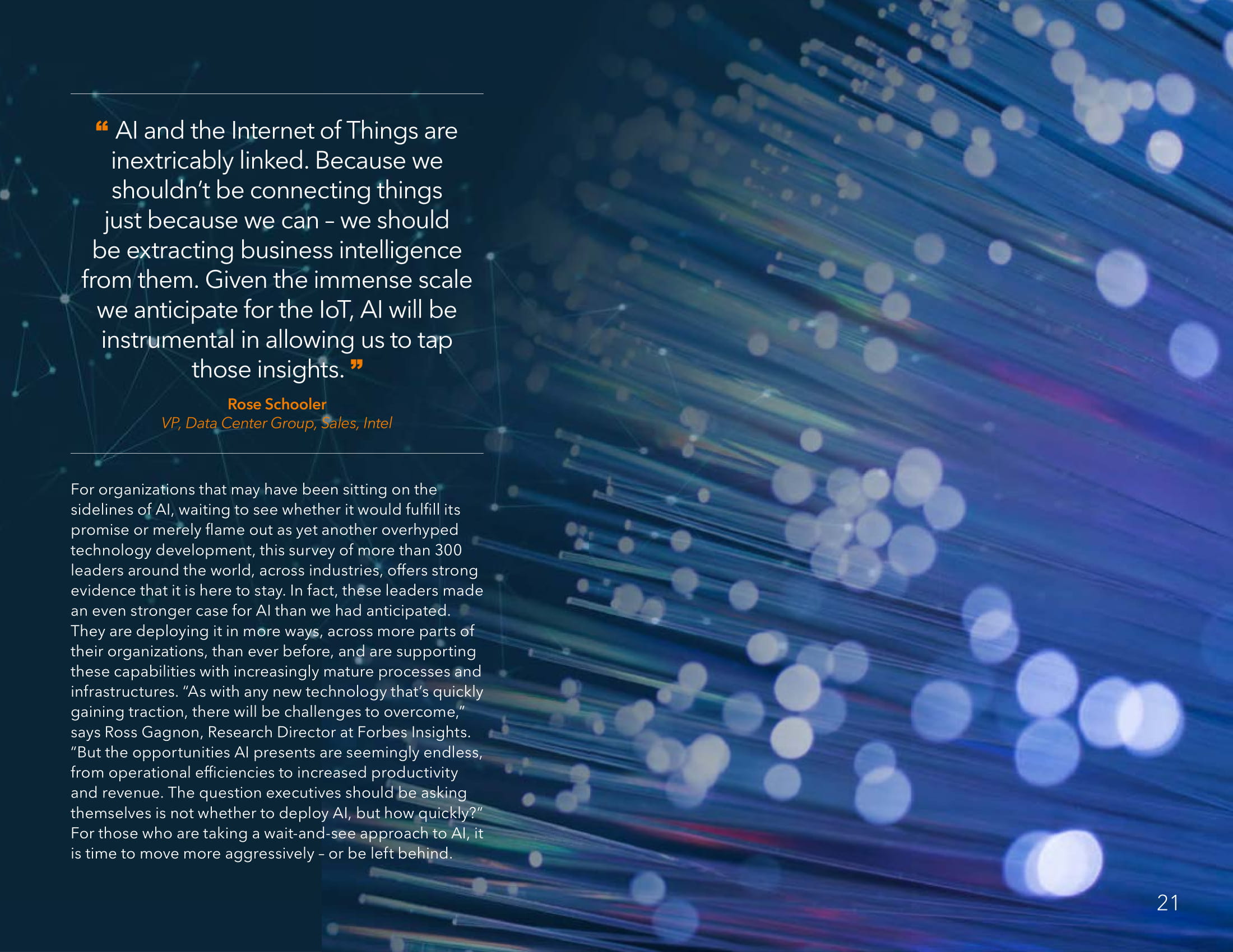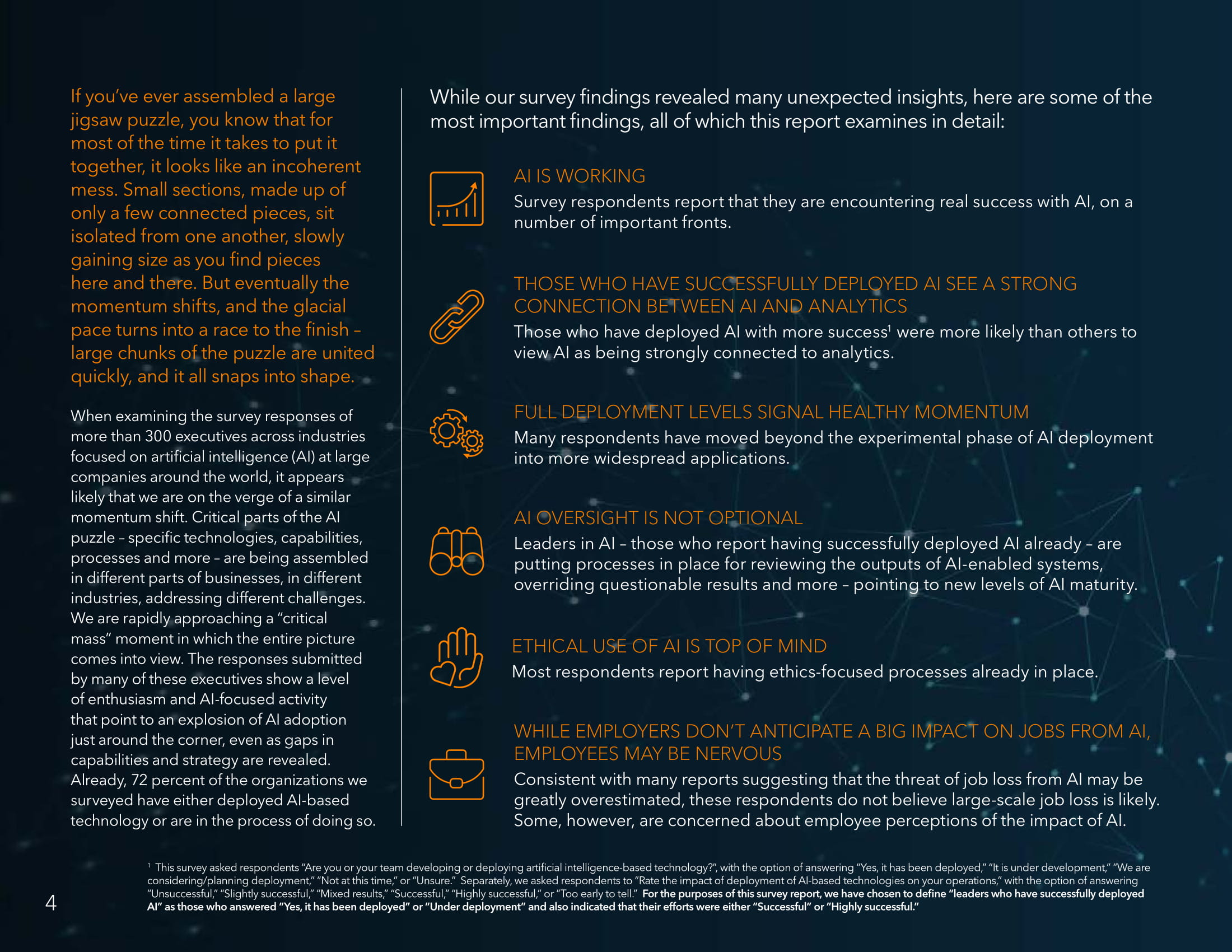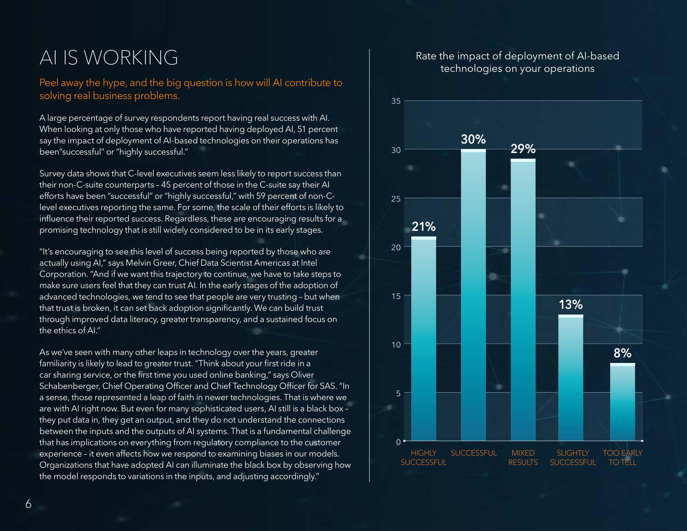 受访者表示在一些重要的方面人工智能已经获得了真正的成功。那些成功部署人工智能的企业已经看到人工智能与分析的关系。